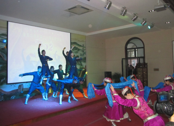 来自额济纳旗蒙古族学校的蒙古国留学生,策克口岸联建单位以及入住策克口岸的各企业员工欢聚一堂,载歌载舞,表达了中蒙两国人民庆祝策克口岸开关20周年的喜悦心情以及对策克口岸发展的美好祝愿。