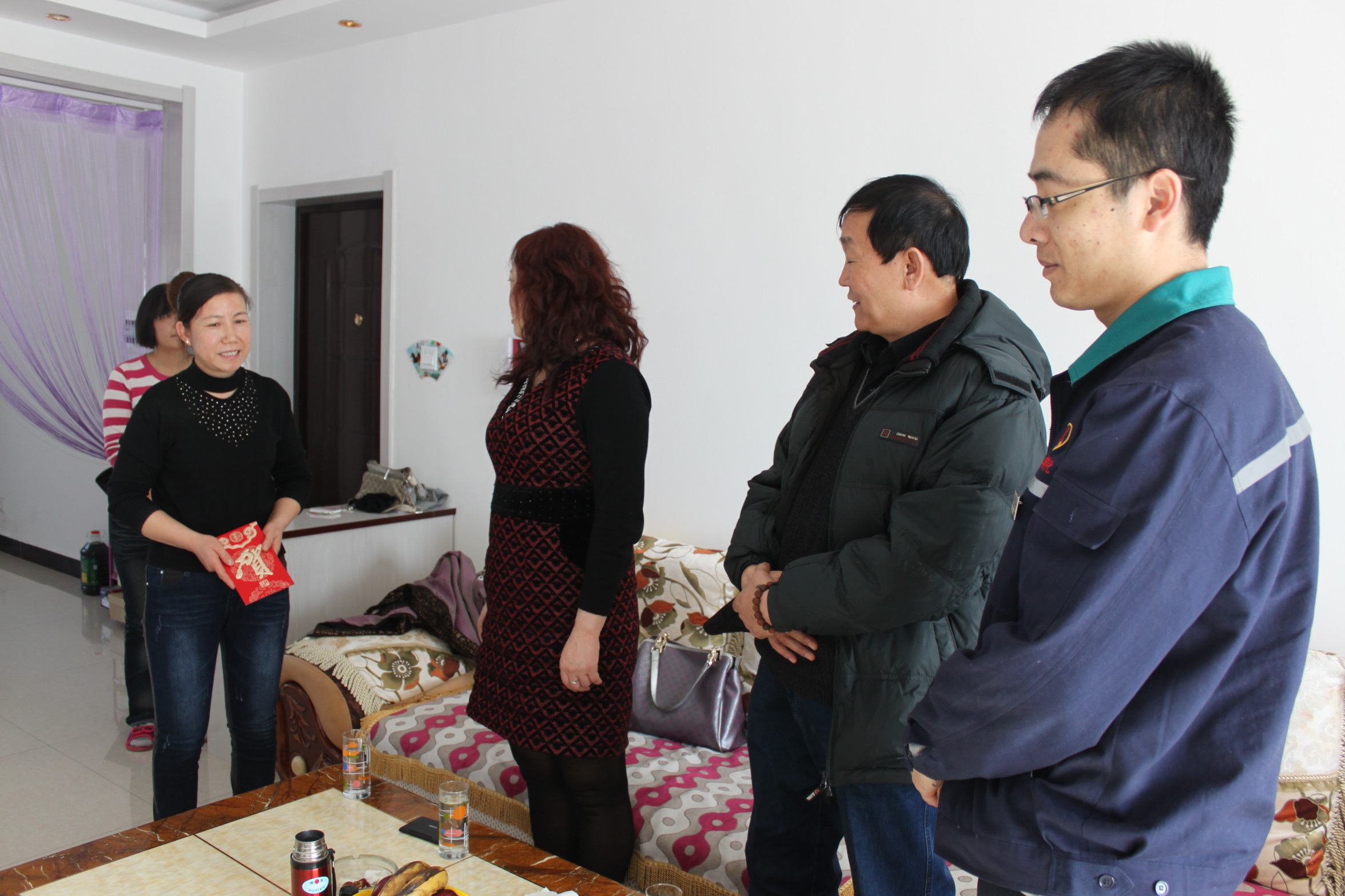 春节来临之际,乌斯太焦化公司领导班子十分牵挂公司生活困难的职工。1月24日,焦化公司行政副总许丽芬、工会主席刘永刚一行代表焦化公司总经理贾昂杨,带着企业的温暖和实物亲切看望了张小红、徐东达、吴刚等三户特困职工家庭。