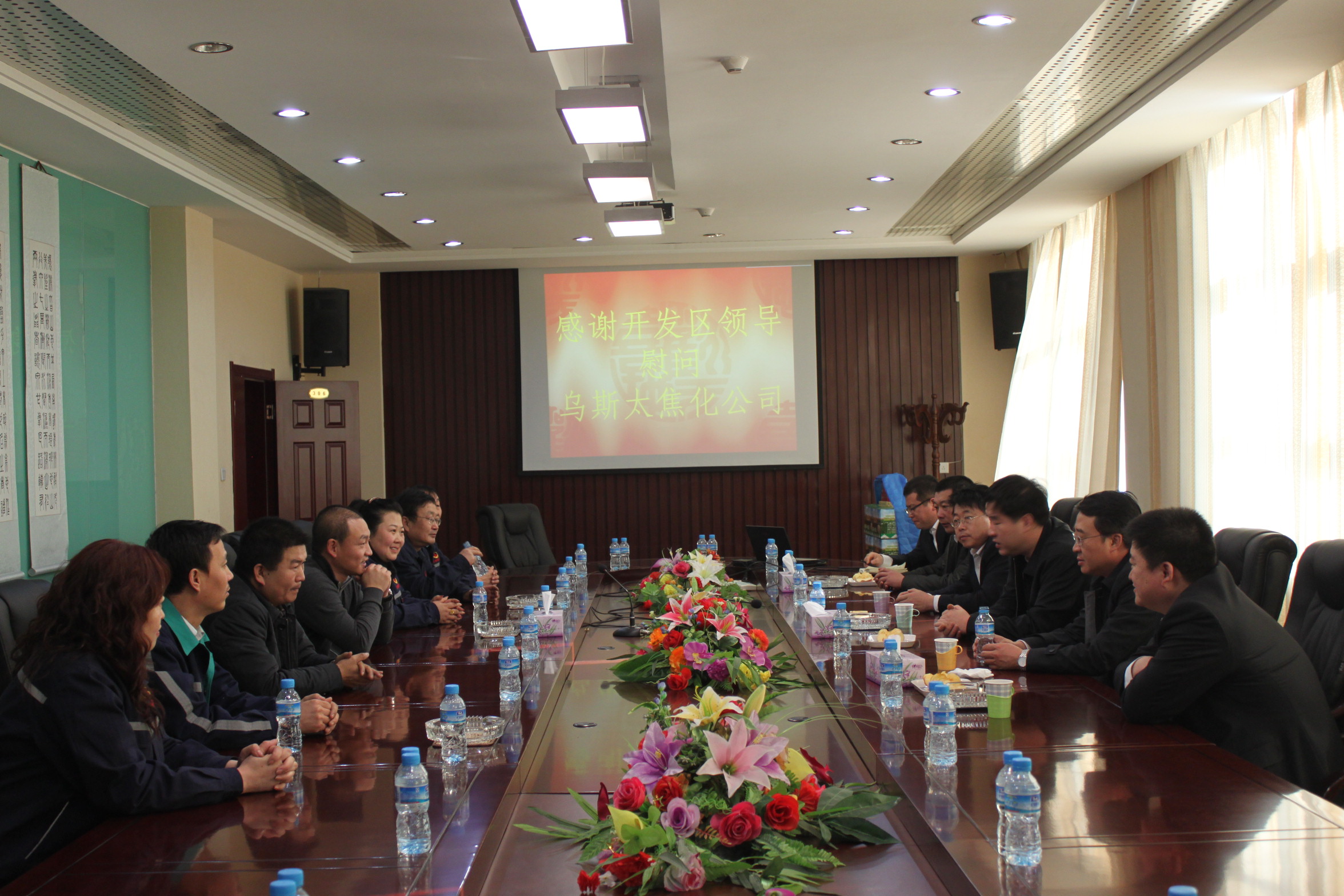 近日,阿拉善经济开发区党工委书记刘志平、管委会主任刘志强等领导一行到乌斯太焦化公司进行节前慰问,乌斯太焦化公司总经理贾昂杨携班子成员亲切接待。