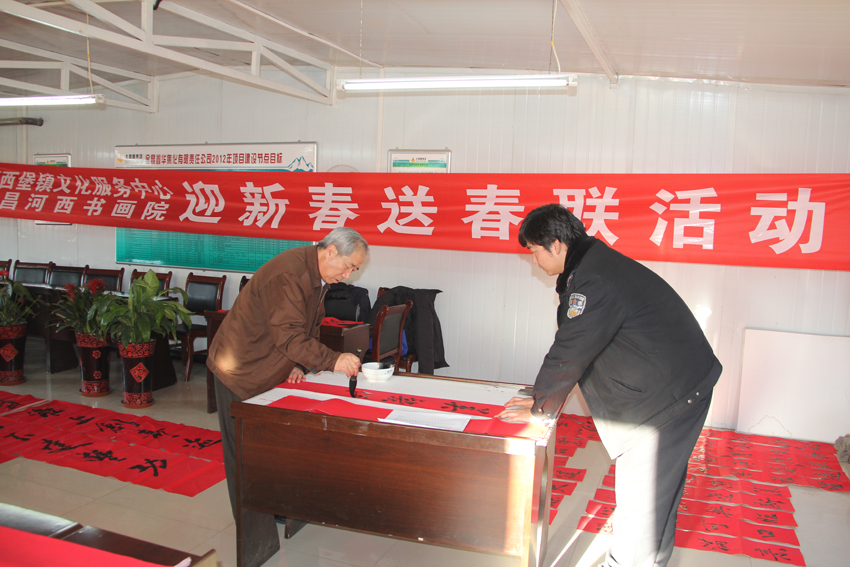 日前,金昌市河西堡镇文化服务中心组织金昌河西书画院王国槐等四位书法家及书法爱好者到金昌鑫华焦化公司挥毫泼墨,书写春联
