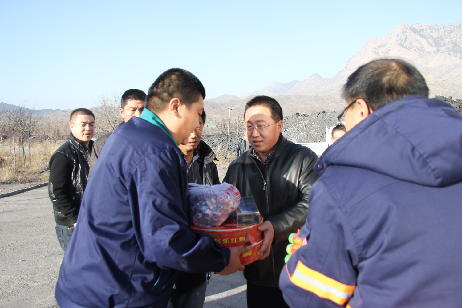 本井讯(通讯员何霏)2月3日,带着春节的祝福和集团公司的亲切关怀,销售公司总经理张海东等领导对矿区各部室、生产部门坚守岗位的职工进行春节慰问,现场发放了肉、糖、酒烟等慰问品,并且代表全体职工向在岗坚守的员工拜早年,向一年来对销售公司作出努力和奉献的全体员工送出祝福。同时希望在春节期间,各岗位员工要发扬吃苦耐劳的良好作风,注意安全生产等工作,每天24小时不定时对现场进行检查,做好值班记录,确保过一个欢乐、祥和的蛇年春节。