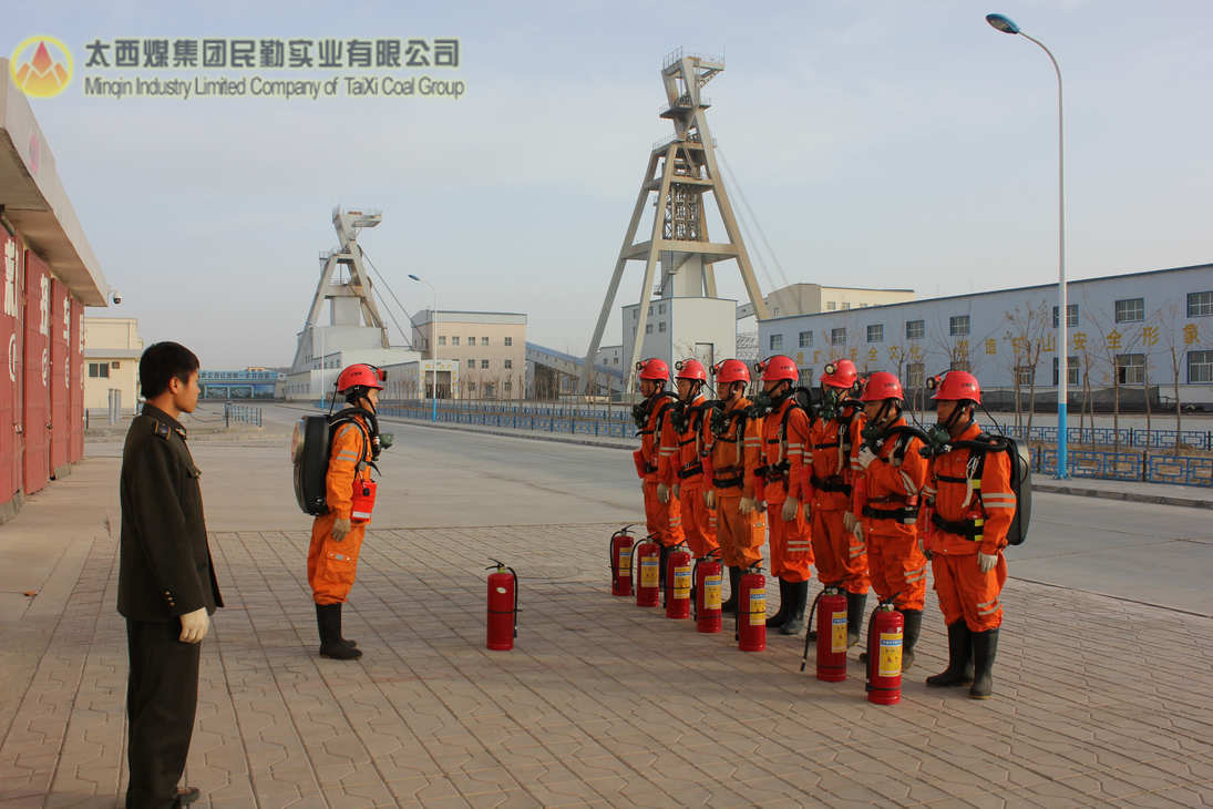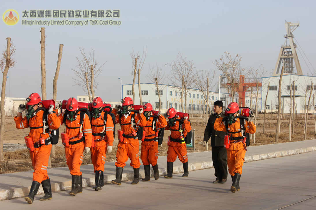 救援中队为了达到“召之即来、来之能战、战则必胜”。太西煤集团民勤实业有限公司矿山救护中队常抓业务技能训练不松懈。图为2013年3月2日早晨8时许,救护中队的一个小队在佩机负重走了万米耐力训练。