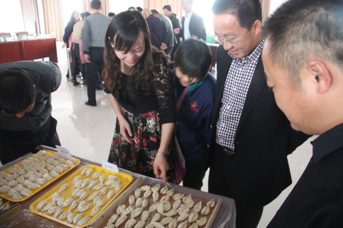 比赛开始,董事长张海东和副总经理吴学强分别为6组选手亲手包出样品饺子作为比赛规定动作。比赛中,女职工们还邀请男职工一起参与活动,大家各显手艺,揉面、擀皮、包饺子一切都在紧张而有序的进行着。比赛结束后张总亲切的为女职工们颁发了节日纪念品,并与大家一起品尝了亲手包出的饺子,在欢歌笑语中度过了美好的一天。