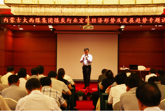 6月9日,受太西煤集团公司邀请,国务院发展研究中心李佐军、项安波、马淑萍、杨绍华、周健奇四位博士及国家能源局煤炭司规划处副处长杨绍华一行到巴彦浩特,为集团公司管理层在家成员、相关部室及各分、子公司主要负责人举办了《煤炭行业宏观经济形势及发展趋势专题讲座》,集团董事长王以廷出席,党委书记王选安主持。