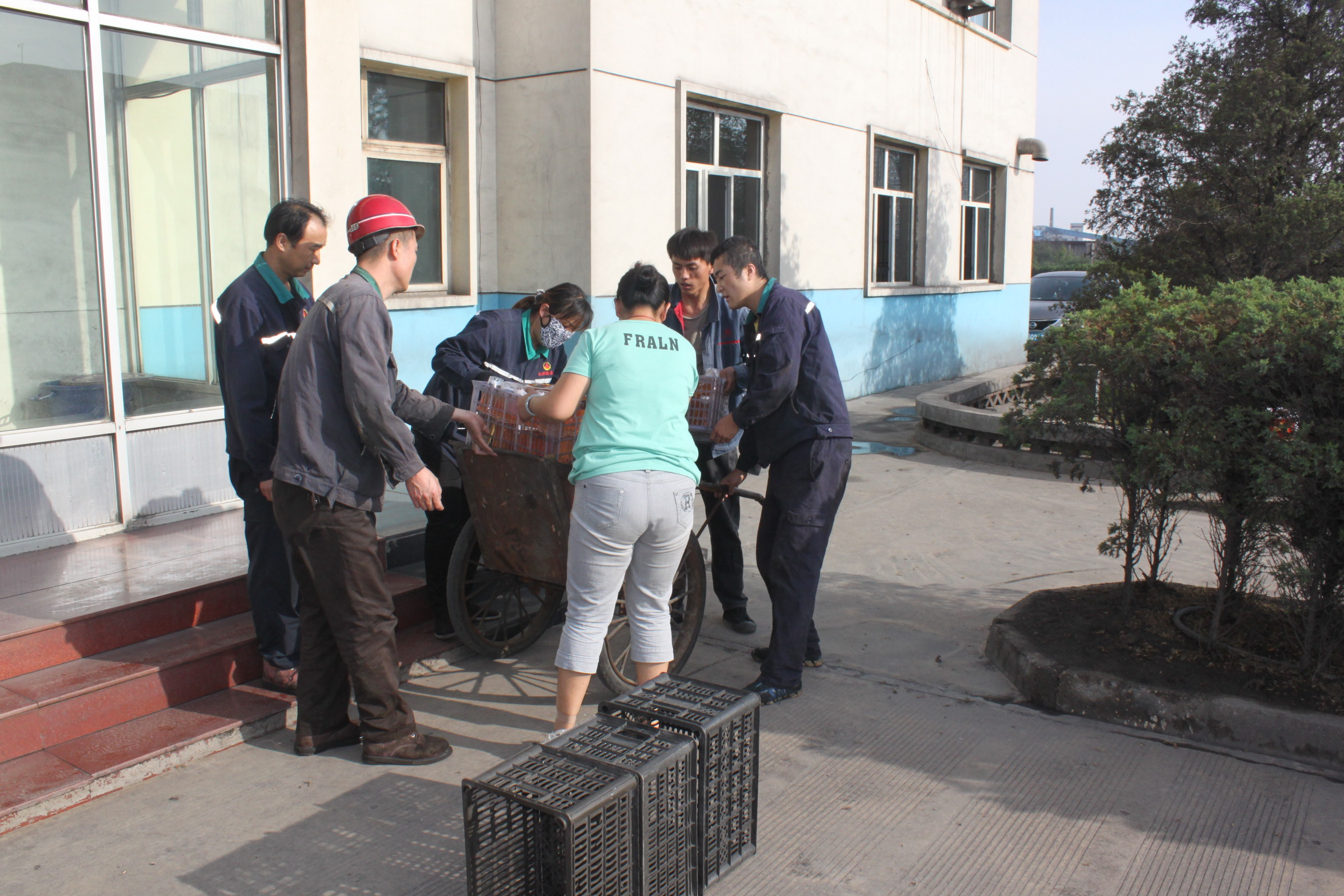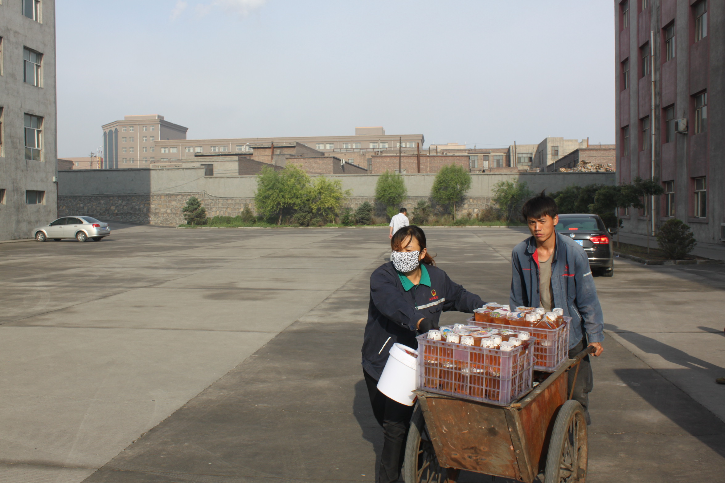 后勤职工送绿豆汤途中