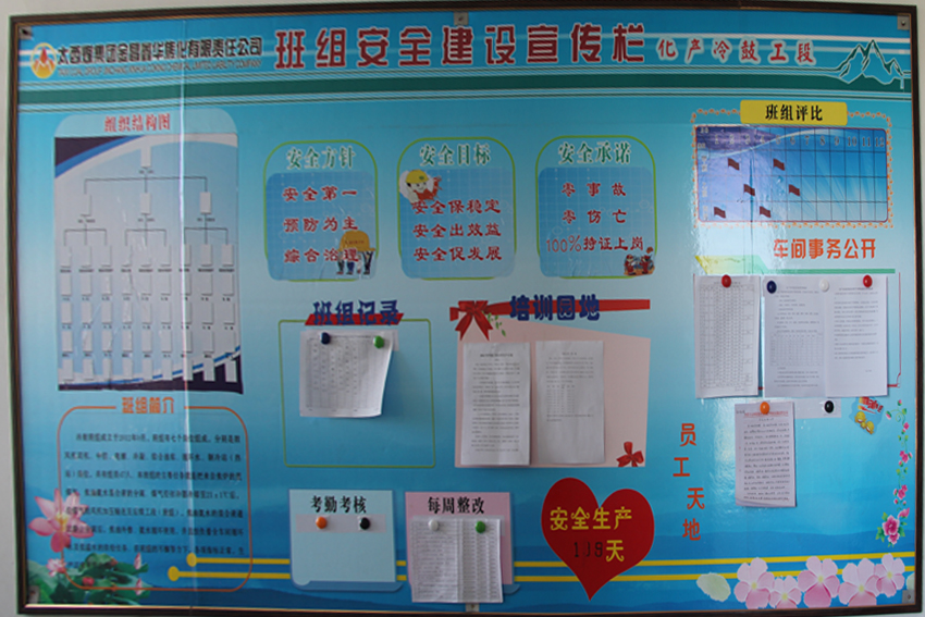 一是开展班组安全宣传,以“班组安全宣传栏”为载体,从“安全方针”到“安全目标”,再到员工“安全承诺”,不断提高班组成员安全意识。