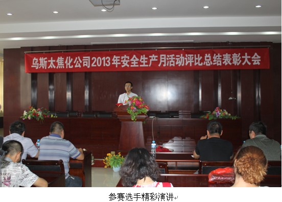 (乌斯太讯)为深入开展安全生产月活动,大力宣传“强化安全基础、推动安全发展”的主题,8月19日,乌斯太焦化公司隆重举办安全演讲比赛。乌斯太焦化公司副总经理何铭基、郑然奇、许丽芬及乌斯太焦化公司各部室负责人出席现场并担任比赛评委。