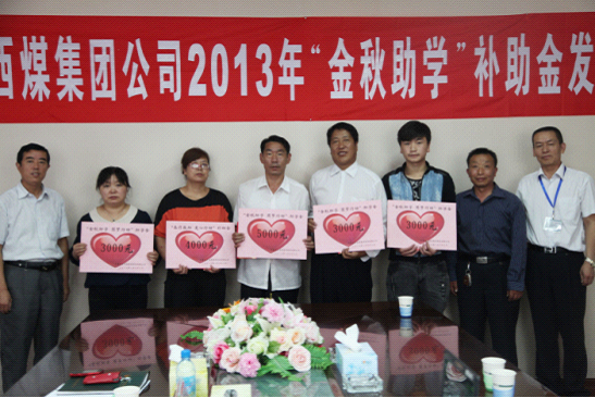 8月23日下午,内蒙古太西煤集团2013年“金秋助学”及“医疗救助”补助金发放活动在巴彦浩特举办,集团公司党委书记王选安,党委委员、工会主席郝华,太西煤集团部分困难职工及职工子女出席。