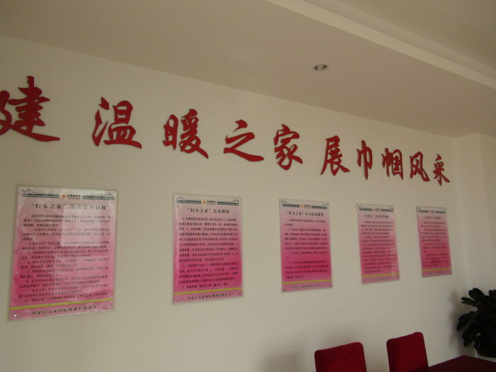 为更好的发挥女职工的积极性和创造性,促进企业健康快速发展,根据旗妇联的指示精神和《中华全国妇女联合会章程》,公司决定组建以包桂兰为主任的4人妇女工作委员会(以下简称“妇委会”),同时也是额旗首家非公企业妇女之家示范点。
