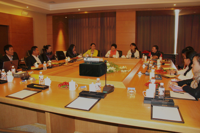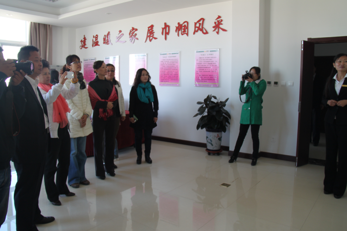 10月15日,盟妇女联合会主席方萍,率全盟三旗两区妇女联合观摩团到太豪公司调研,就2013年妇女工作目标落实情况及“一家一品”妇女之家建设开展督查观摩活动。额济纳旗妇联主席格日勒、副主席石俊霞、太豪公司工会主席吴学强及公司女工委委员陪同调研。