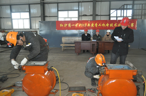 本次比赛共有26名青工参赛。比赛内容为理论考试与现场实操,理论考试已进行完毕,现场实操项目为接线工艺、故障处理、保护整定、三联按钮接线。为了模拟真实井下环境,参赛选手们统一着井下工作服,胶靴、自救器、矿帽矿灯、人员定位卡、等下井装备一应俱全,每位选手比赛时身边都有一名机电科技术员或副科长进行监督,保证比赛公平公正;每组比赛结束后由所有监督员共同进行裁判,经讨论后按操作标准要求和所用时间现场打分并登记,参赛者无不使出浑身解数,力争拿出自己的最高水平。经过两天紧张的现场比赛,结合理论成绩,共决出一等奖一名、二等奖二名、三等奖三名分获300元、200元、100元的现金奖励和荣誉证书。民勤实业有限公司工会主席苏文娟、红一矿矿长么民阳等领导对本次比赛进行了现场观摩指导。
