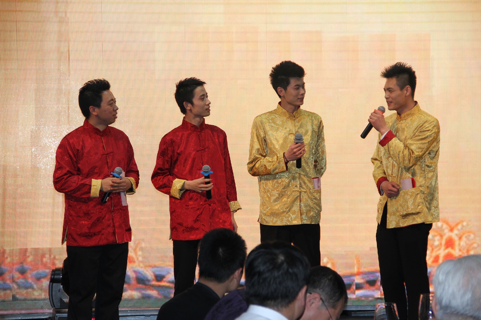 小品《熊出没》真人模仿秀通过滑稽的动作和幽默的台词展现了大家童心未泯的天真善良;由退伍军人表演的《倒功》每一招每一式都刚劲有力,彰显了员工军人般的果敢和干练;相声《马年说马》、魔术表演和歌曲《带我到山顶》、《说唱脸谱》、《将进酒》、《三句半》等精彩的表演赢得了台下阵阵掌声和欢呼,尤其是《三句半》,凝练的台词字字珠玑,既回顾了努力的过去又展现了美好的未来,催人奋进。