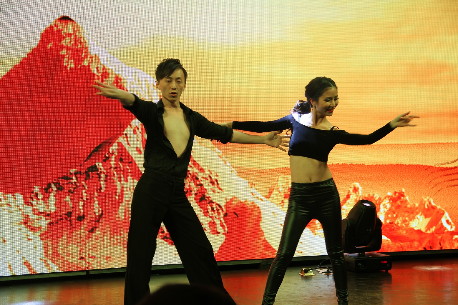 舞蹈《拉丁风情》将晚会推向了高潮,表演者婀娜的身材、轻盈的步伐、优美的舞姿,妩媚的眼神,浪漫而又富有活力,火辣而又自由奔放,场下的观众无不心潮澎湃、热血沸腾。