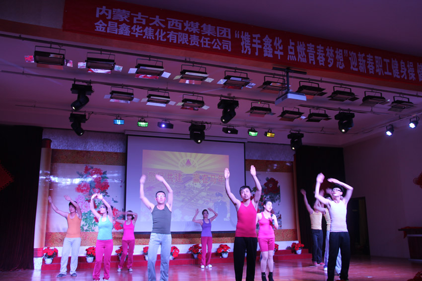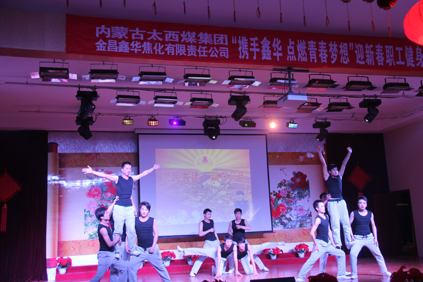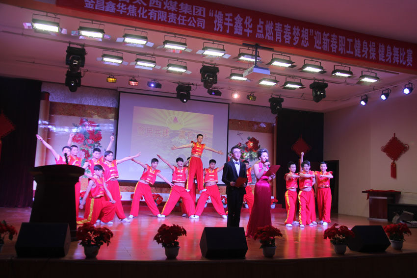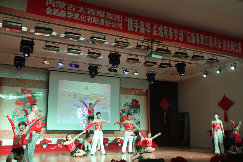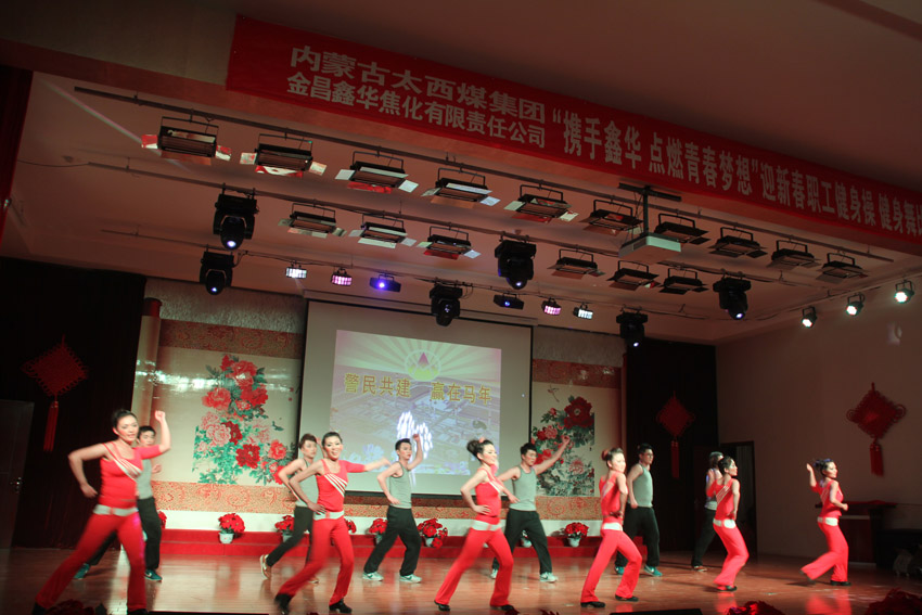 1月22日,金昌鑫华焦化四楼多功能厅灯火辉煌,歌舞飞扬,其乐融融,由公司举办河西堡消防中队参演的2014年迎新春职工健身操、健身舞比赛隆重上演。集团公司党委书记王选安、工会主席郝华及集团慰问组成员、民勤实业、金阿铁路兄弟单位领导、河西堡消防中队领导观看了此次晚会。