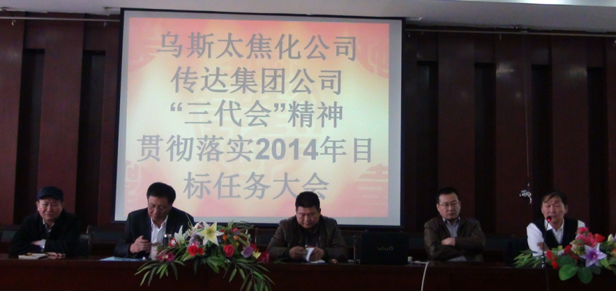 为认真传达集团公司召开的《四届三次股东代表大会董事会工作报告及总裁班子工作报告》会议精神,确保完成2014年焦化公司各项工作目标任务,近日乌斯太焦化公司召开专题工作会议,积极传达集团公司三代会精神,贯彻落实2014年焦化公司目标任务。