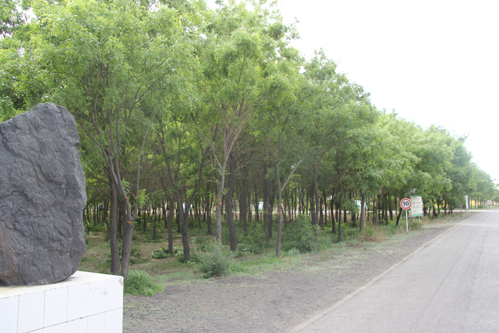销售公司地处乌兰布和沙漠腹地,这里最大的特点就是严重缺水,常年风沙大,种活一棵树相当困难。近年来,销售公司组织员工对白杨树、榆树、柳树、沙枣树等的枝条进行了修剪,去除竞争枝、侧枝和清干,抑制树木侧枝的生长发育,减少侧枝萌发,保证树形通直向上。随后,对修剪后的伤口进行了处理,避免树干内的水分散失和病虫害侵入,每年春节和秋季,都对树木进行防冻、灭害虫和及时浇灌。