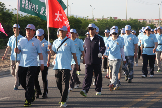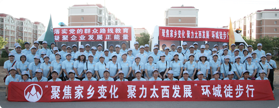 为进一步贯彻落实党的群众路线教育实践活动和自治区“8337”发展思路,5月28日,太西煤集团以“聚焦家乡变化、聚力太西发展”为主题的25公里环城徒步行走实践活动在巴彦浩特雨露花园小区启动。集团公司董事长王以廷、副董事长王敬华、总裁王海霞、党委书记王选安及机关全体员工积极参加。参加活动的120多人组成的四个队分别用行走书写激情与信念、担当与责任。