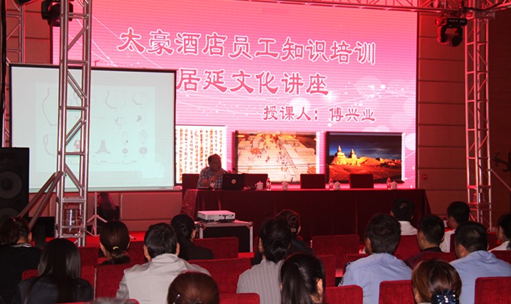 2014年6月10日上午,根据年初制定的全年培训计划,本着对酒店员工“高标准、严要求、拓技能、强素质”的培训理念。太豪国际酒店特邀请旗文物所专家对《居延文化》知识进行讲解,内容包括:居延历史、名胜古迹、古城遗址、历史渊源、近代史记等。