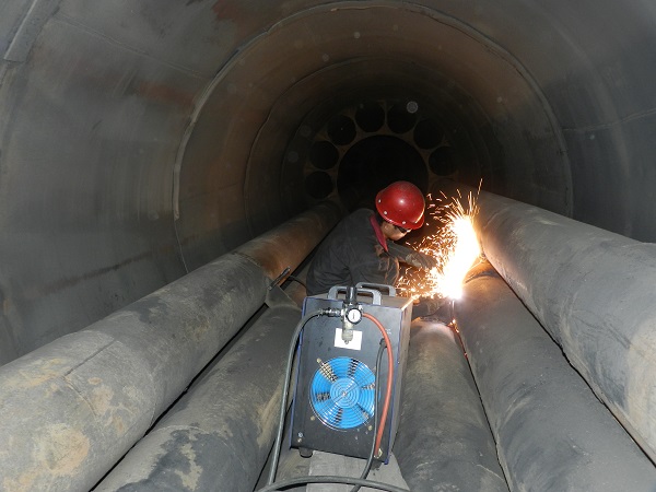 年活性炭车间炭化炉技改正在施工中。(图为施工现场)