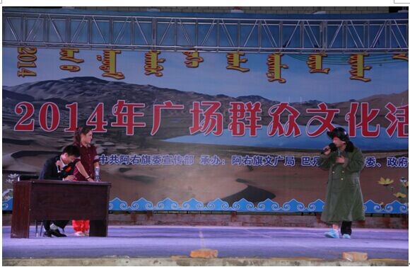 为丰富居民文化生活、弘扬企业文化精神、营造和谐的社会氛围,阿右旗经贸系统于8月8日晚在阿右旗满达广场举办了《2014年经贸系统广场群众文化活动晚会》。由我公司王军、温永永、陶琴三人共同表演的小品《招聘安全员》用诙谐幽默的方式,不断赢得了现场观众阵阵掌声和喝彩,同时也诠释了“安全”是企业一切工作的重中之重。