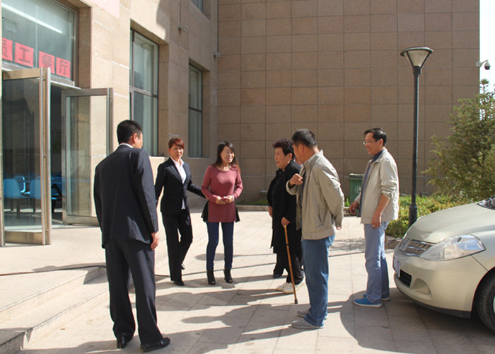 太豪公司领导在员工宿舍门口迎接德德玛老师的到来
