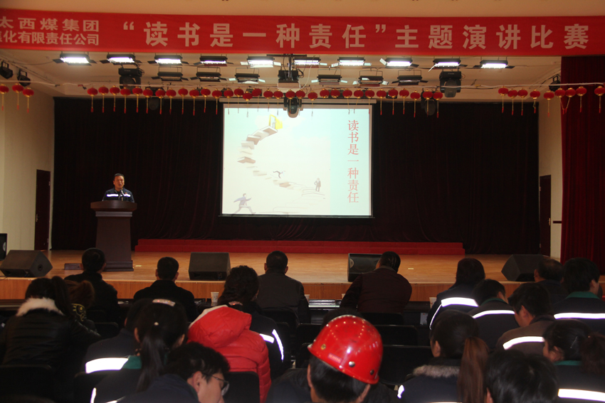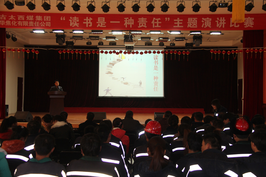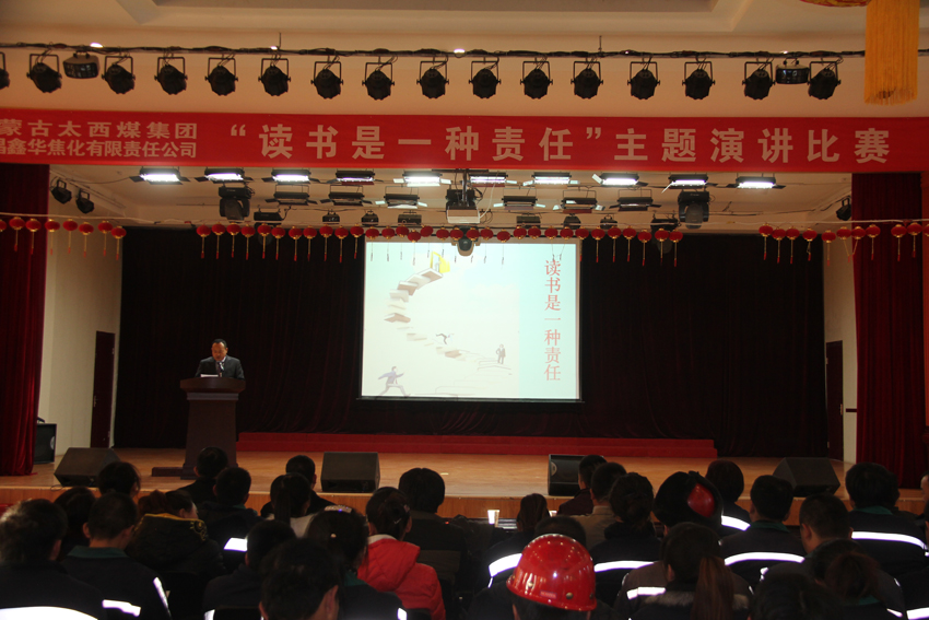 2014年12月12日,鑫华焦化举办了“读书是一种责任”主题演讲比赛,公司各个部门的十六名选手阐述了他们对读书是责任的认识。“读书是一种责任”演讲活动,旨在激发员工的学习热情,不断提升员工自主学习能力,着力推进学习型团队建设,切实提高员工素质,提高公司管理水平,降低能耗物耗工艺损耗,使公司在激烈的竞争环境中站稳脚跟。