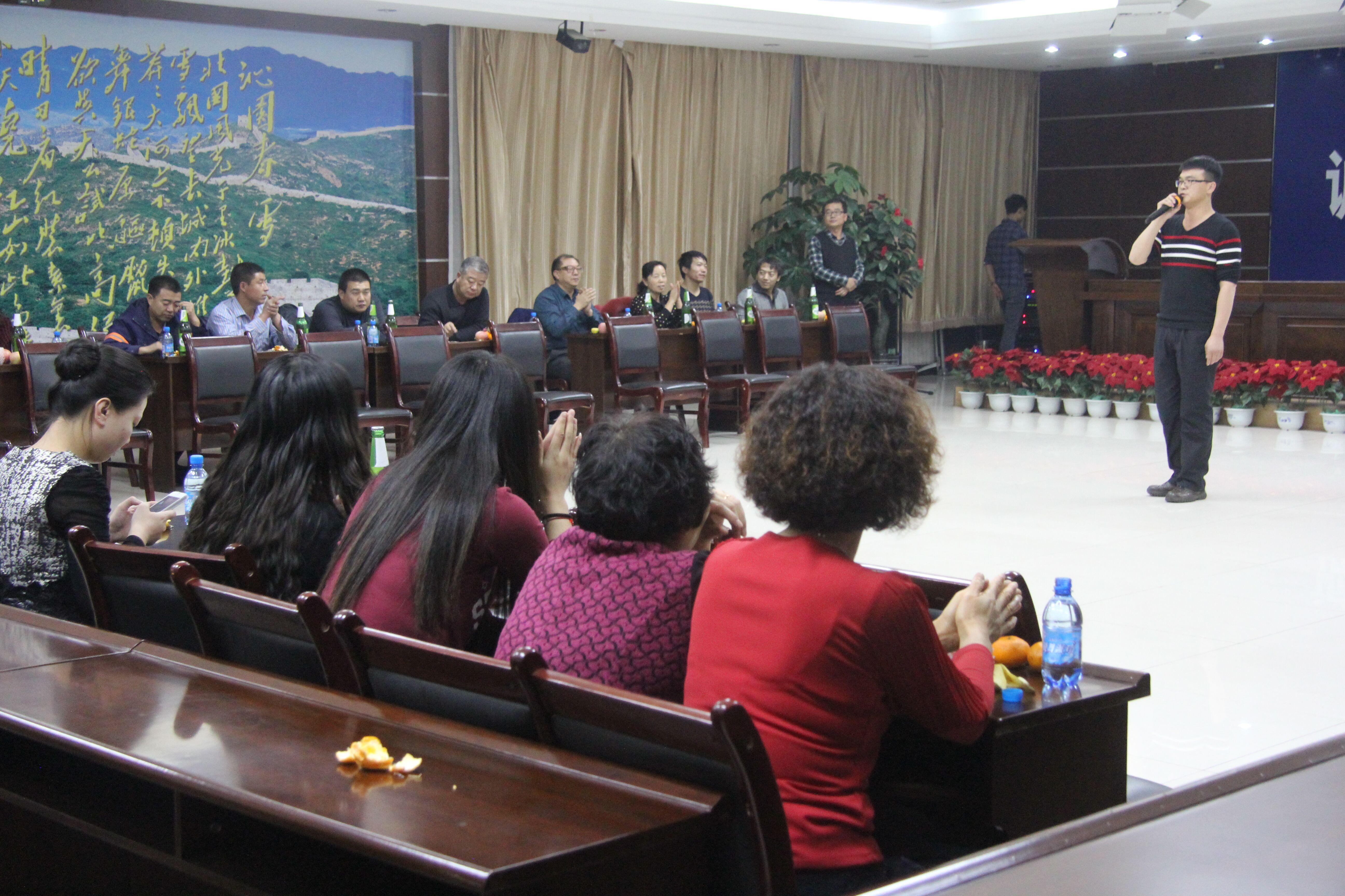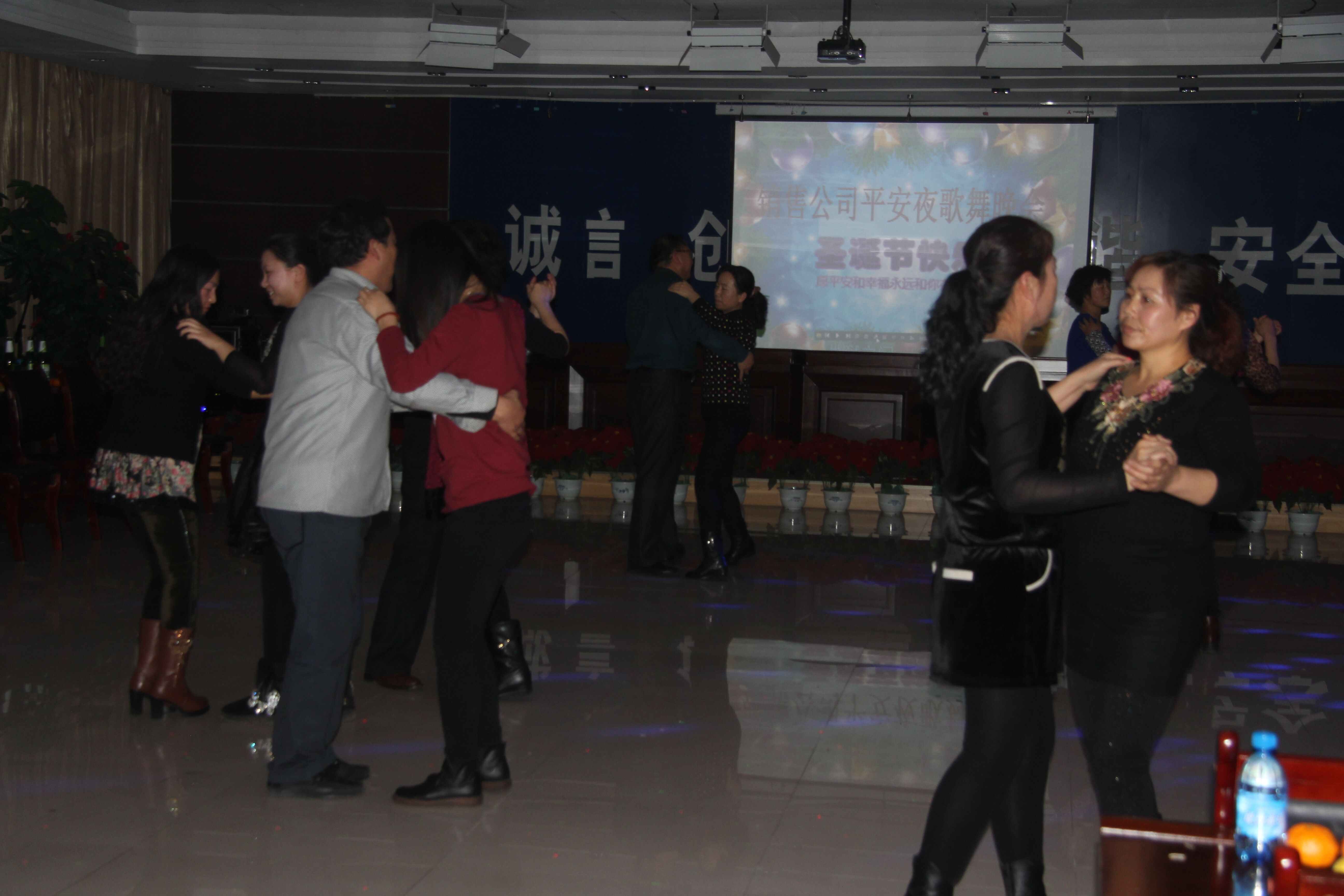 12月24日晚上8点30分,销售公司激情打造的“愿平安和幸福永远和你在一起”平安夜圣诞歌舞晚会隆重举行。当晚,销售公司会议室内坐满了员工及家属,济济一堂,共享这激情难忘的一夜。现场布置尽显圣诞平安夜特色,温馨别致。