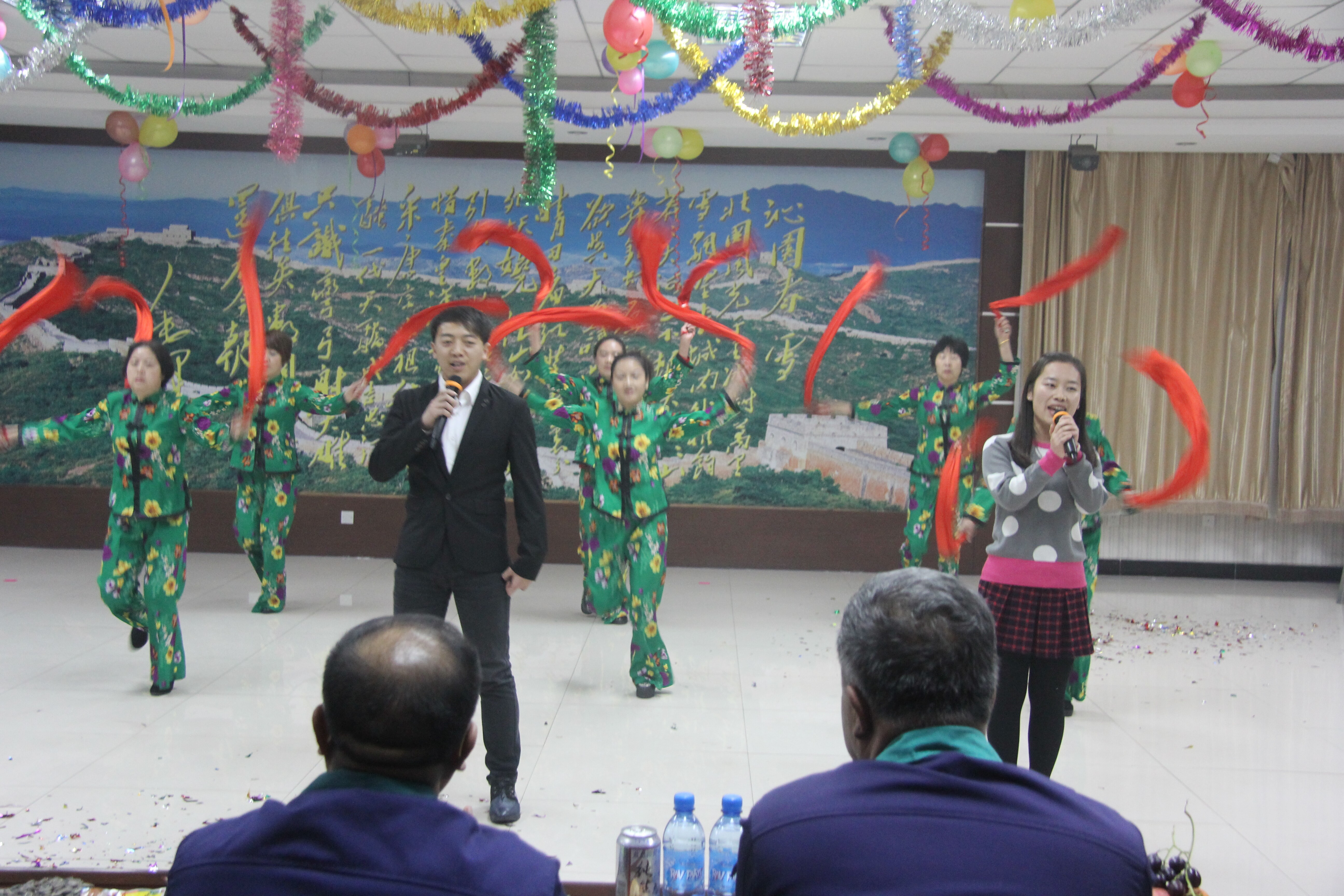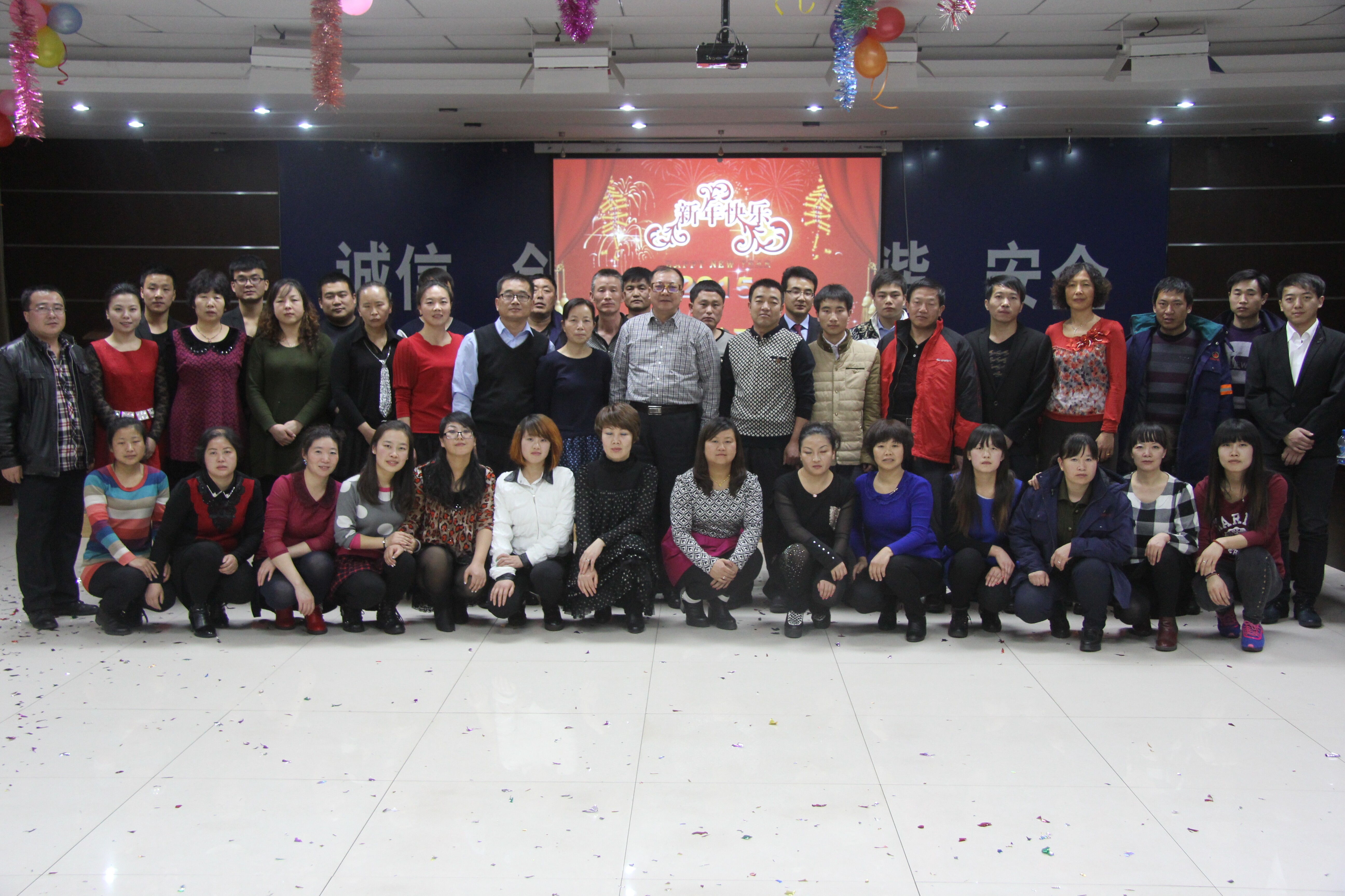 轻歌曼舞庆元旦; 欢声笑语迎新年。2014年12月31日晚8点,销售公司2015年“欢欢喜喜过新年,同舟共济创辉煌”元旦联欢晚会在四楼会议室隆重举行。4个多小时的联欢会,公司领导班子成员、全体员工、员工亲属和农民工及其家属齐聚一堂,共同见证过去一年的成就,同心唱响新一年的辉煌。