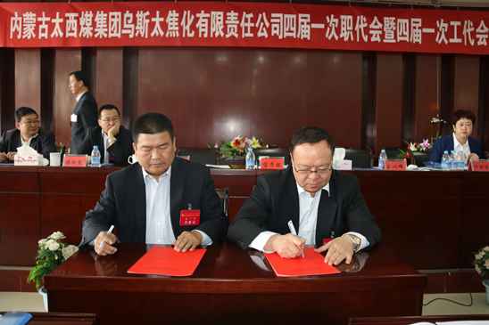 乌斯太焦化公司于4月2日胜利召开四届一次职代会暨四届一次工代会。会议为期一天,由工会主席刘永刚和行政副总经理许丽芬主持。内容包括焦化公司行政工作报告、工会工作报告的宣读审议、双代会筹办及代表们选举情况说明、相关决议及3+1合同的审议签署、选举产生新一届工会委员会、民主测评管理者等项目。大会代表们认真审议并通过了总经理宝彦铭所做的行政工作报告、工会主席刘永刚所做的工会工作报告、《2014年乌斯太焦化公司考核办法》。会中通过无记名投票方式选举产生了新一届工会委员会及女工委员会。总经理宝彦铭和各副总分别签署了2015 年度安全、管理目标责任状,和工会主席签订工资专项集体合同和3+1集体合同;大会听取了焦化公司几个副总经理的重要讲话和部分职工代表的交流发言。