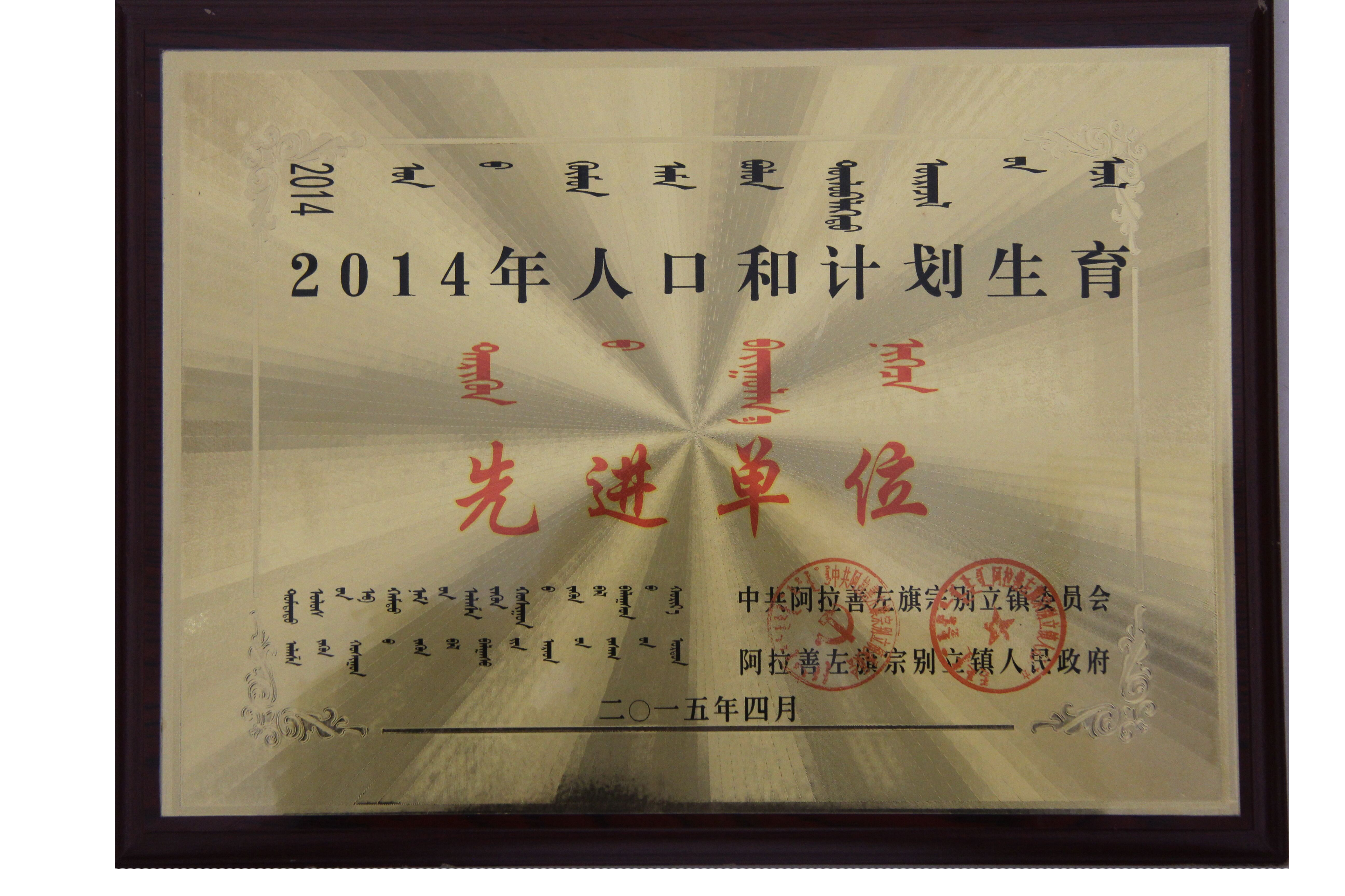 本井讯(通讯员 柴吉成)4月29日,在宗别立镇召开的第十五届人民代表大会第五次会议上,销售公司荣获“2014年度人口和计划生育工作先进单位”荣誉称号。