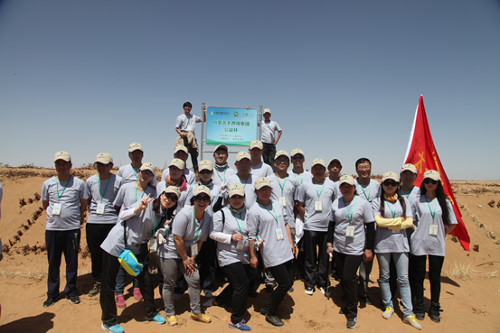 “一个沙岗,又一个沙岗,一个太阳,又一个太阳,野性的旱风扑过来把我拥抱,我的心困惑了,为什么它滚烫而又凉爽?” 这是文人对沙漠风光的真实感受。 (任志强等知名企业家与太西煤集团志愿者合影留念) 通古淖尔系蒙古语,为清澈的湖泊之意,被誉为腾格里沙漠的蓝色眼睛。阿拉善左旗通古淖尔地区,是指腾格里沙漠东缘的三千平方公里大沙漠。长期以往困扰当地政府和居民的是土地沙漠化的加剧。严重制约当地的经济发展和人民安居乐业。从上个世纪开始,政府、企业和驻地居民就已经投身到人与沙的较量中,在这里展开了一场艰巨而没有硝烟的战争——治沙。 沙漠化导致土地退化,土壤结构破坏,土壤养分流失。而土壤肥力的自然恢复需要数十年、数百年,甚至数千年时间。如果用人为措施恢复土壤的肥力,需要的投入量难以计算。保护生态环境、治理沙漠化已经刻不容缓。 沙漠是凝固的海。维护这片海的安宁与美丽需要全员参与。 2015年5月1日,由阿拉善SEE公益机构主办的“拯救10m2”一亿棵梭梭2015年春种活动如火如荼。任志强、袁岳、毛大庆等中国知名企业家、当地政府、企业和社会志愿者共600多人参加的了此次公益活动。 环保需要从日常行为抓起 常说环境保护从自身做起,从一点一滴的小事情做起。在这次公益活动中,我们注意到了所有人水杯自带,吃的简餐,活动启动动员讲话看不到讲话稿。活动现场看不到一点生活垃圾,这些都说明了一种理念的改变,一种认识的提升。 据阿拉善SEE协会工作人员介绍,“一亿棵梭梭”是SEE和当地林业部门合作的战略合作项目。项目规划区域与政府的植被恢复区域互补,旨在使连接而成的绿化带成为一道生态屏障,遏制腾格里、乌兰布和、巴丹吉林三大沙漠接合和进一步蔓延,确保有效恢复当地荒漠植被。这次活动筹办小组严格遵循绿色、环保、简约理念,在活动各环节设计方面充分考虑脆弱的生态环境,尽量做到不留生活垃圾,保持这片沙地的整洁。这些看似小事,实则是大事,很科学、很人性化。只要我们把这些日常生活中的小事情做好了,我们的环境保护工作才能实到实处。 没有界限的治沙攻坚战 5月1日是劳动者的节日,但大家依然冒着酷热种梭梭,一桶又一桶的浇水。有年过花甲的老人、有中学生、大学生志愿者,有天真烂漫的小孩,有的家庭甚至全员参与。这种力量已经超越了年龄、区域,民族…….形成一股强劲的精神动力。在现场,这样一个温暖的镜头感动了所有人:两个不到十岁小孩用一个木棒抬着水桶,来回穿梭在大人中间,浇灌着一棵棵梭梭苗子。稚嫩的小手不停的擦试着额上的汗珠…….“我爸爸妈妈也来了。看,在那边……”其中一个小孩对着镜头,扮着鬼脸说。顺着小孩指的方向我们看到一对年轻夫妇正在专心致志的种树,丈夫挖坑添坑,妻子扶着树苗,孩子在浇水,这无疑是一幅最美的劳动画面。 (太西煤集团公司志愿者正在种梭梭) “我的根在阿拉善,随父辈去了陕西,对阿拉善很有感情。孩提时代,我记忆中的阿拉善很美,通古淖尔地区湖泊环绕,沙金湖、艾伊特湖、天鹅湖……大大小小有数十个湖泊,天水一色,野鸟飞翔,黄色的沙涛,苍茫没有尽头…….”“每年这个时候我都要来这里植树,能为这里奉献一点微薄之力,这是很有意义的事情。” 来自陕西的志愿者表达出了他的心声。他是两鬓斑白,目光矍铄的老人,更像一位诗人。 “我是北京的大学生,对于沙漠的认知仅限于电视镜头和书本图片,这次身临其境,感触很多,北方的治沙工程真是一个壮举,北京人说北京的沙尘暴是内蒙古刮过去的,我认为这是一种很偏激的说法,沙漠化治理已经是一项系统工程,没有人与人、区域与区域之分,所有人都应当积极行动起来,身体力行的投入到这场人沙斗争中。这也是实现绿色中国梦的一种具体体现。”来自中国人民大学的一位学生说出了他的感受。 “良好的生态环境和充足的自然资源是企业发展的基础和条件,实现经济发展与环境保护双赢是新形势下企业发展的必然选择。我们太西煤集团公司40人参加这次种树活动,旨在员工意识中树立生态文明理念,让员工爱企业、爱家乡、爱护环境。作为阿盟本土企业,集团每年都要投入大量的人力、物力植树造林,绿化山川,这是一种义务、更是一种责任。”参加此次活动的太西煤集团公司一位领导说出了企业对环保的重视和认识。 …… 重新思考人与沙漠关系 大自然赋予这片土地神奇与魅力。通古淖尔,以湖与沙绽放异彩,注定有它的独特与浪漫。这里是沙的世界,更是水的天堂。这里是湖与沙的奇缘,更是沙与湖的偶遇。是沙造就了湖,也是湖成全了沙。最可贵的是,面对漫漫黄沙,这里的人学会了换一种思维看沙漠,把“绿化”与“产业化”相结合,把“治沙”与“致富”相结合,实现了生态和经济同频共振。每年慕名而来的游客,做客沙漠人家。有效地带动了当地经济发展,驻地人民的钱袋子也逐渐鼓起来了。 (太西煤集团志愿者在集团公益林牌前合影) 几年前,面对茫茫沙海,当地居民除了茫然还有担忧,如何过好自己的小日子?现在,他们找到了答案。当地充分利用沙区丰富的光热水土资源,突出以促进农民增收为重点,把防沙治沙生态建设与沙产业有机结合。沙葱、沙芉、苦菜,这些天然野菜,已经在市场上很走俏;田园式农家乐,绿洲上农牧民小