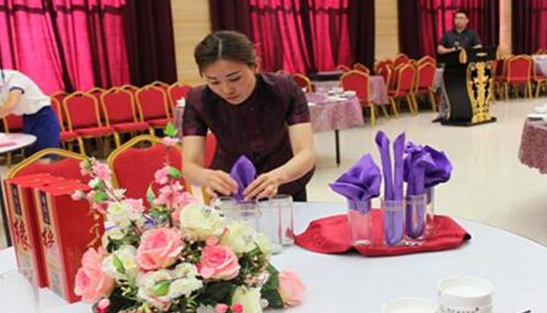 比赛以中餐宴会摆台为主,共分为7组进行,每组3个选手在规定的时间内完成铺桌布、摆放餐碟、酒杯、汤碗、汤勺、筷子、公共餐具,折餐巾花、拉椅让座、托盘,逐位斟倒红、白酒等摆台步骤。经过紧张激烈的角逐,太豪国际酒店选手刘娜获得第二名的好成绩