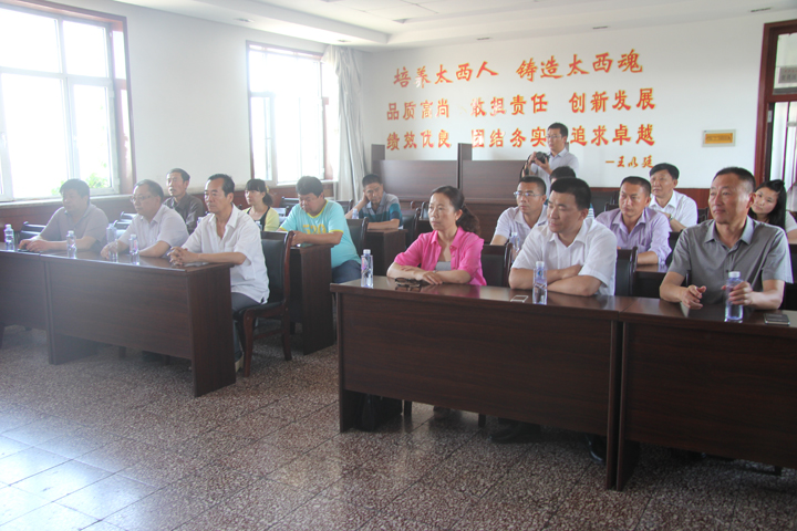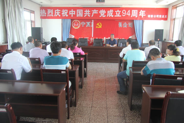 西大滩讯: 7月1日,参观完宁夏“国务院五七干校博物馆”后,销售公司党总支在宁夏蒙太煤业公司召开建党94周年庆祝大会暨“发扬革命精神传统,增强党员责任感,坚持理想,展望未来”为主题的党课教育,全体党员、预备党员、邀请党外领导干部共18人参加了会议,公司党总支副书记刘兴德同志授课。