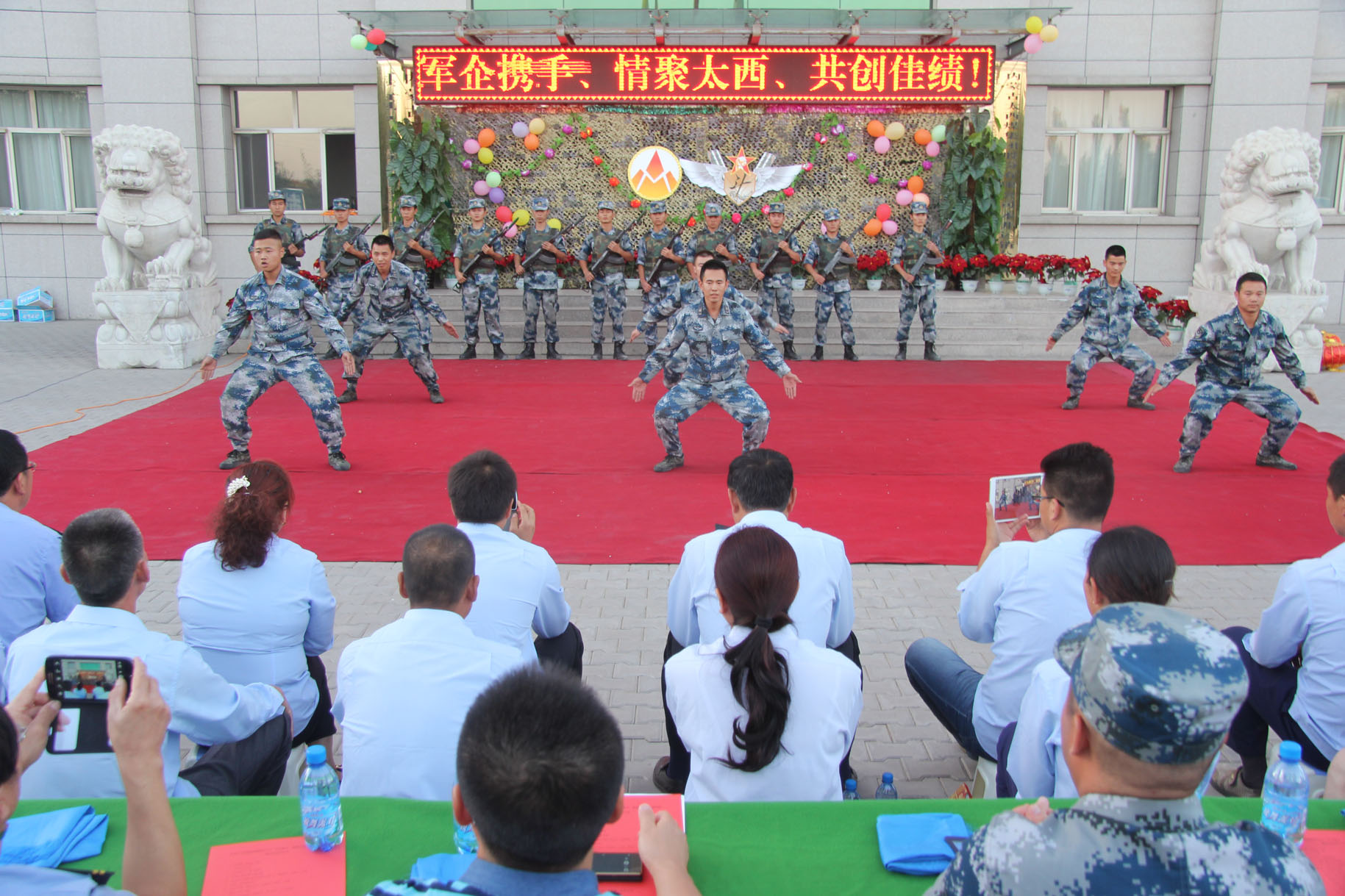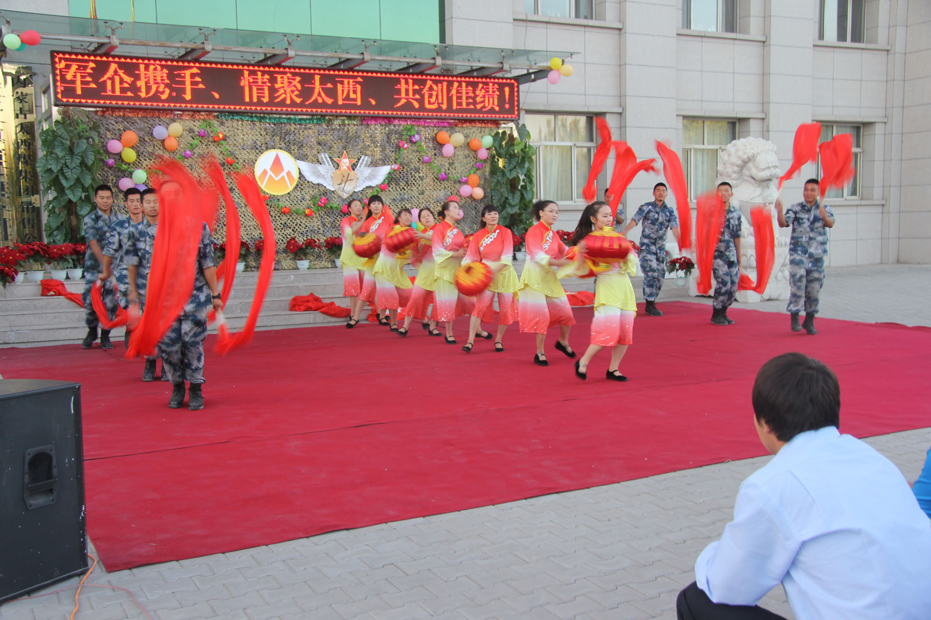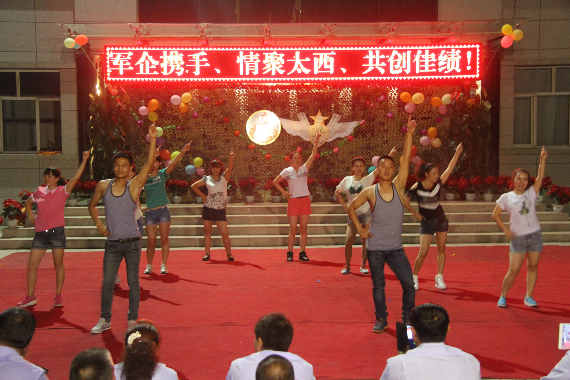 “军企携手,情聚太西,共创佳绩”联谊活动从早上9:00开始,销售公司干部职工穿着整洁的工装,排着整齐的队伍参观了93804部队军营、军演阵地,对我们国家有先进的军队装备、爱国爱民的优秀军人表示由衷的赞叹和自豪。诗歌朗诵《我们是自豪的太西人》似一幅幅画卷,向人们展现了太西人三十年不屈不挠的努力,从一个小型企业发展为六区十地产业基地的丰功伟绩。广场舞《火了火了火》,使大家联想到销售公司群众性文化体育活动如火如荼,体现了销售公司年轻一代盼望企业走出低谷、走向辉煌的心情和无私无畏、持续发展的坚强决心。《军体拳》表演、诗歌朗诵《用我必胜,决战疆场》,展现出当代军人铿锵有力和热爱人民、报效祖国的拳拳之心。一曲曲优美的舞蹈,一首首欢快委婉的歌声,一个个游戏互动、才艺表演,形式活泼、内容充实、展现正能量的节目,充分展示了职工、军人献身国家、军队建设的不悔风采,使联谊活动和谐、融洽、热烈。一次次的节目高潮、一次次的鼓掌欢呼,军队和企业员工的心彼此拉近了距离,产生出澎湃的激情。
