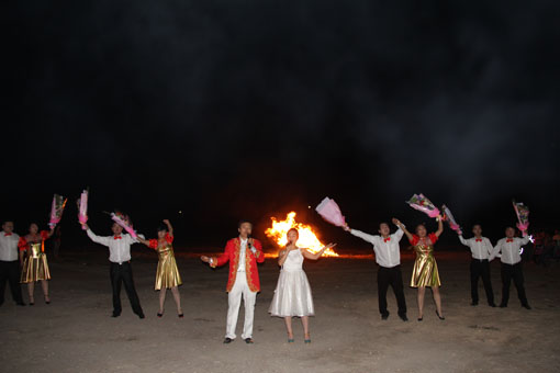 9月25日晚8时,金昌鑫华焦化公司举办了“庆中秋迎国庆”篝火晚会。乌斯太焦化公司部分领导、鑫华焦化公司领导班子全体成员及200多名员工参加了晚会。