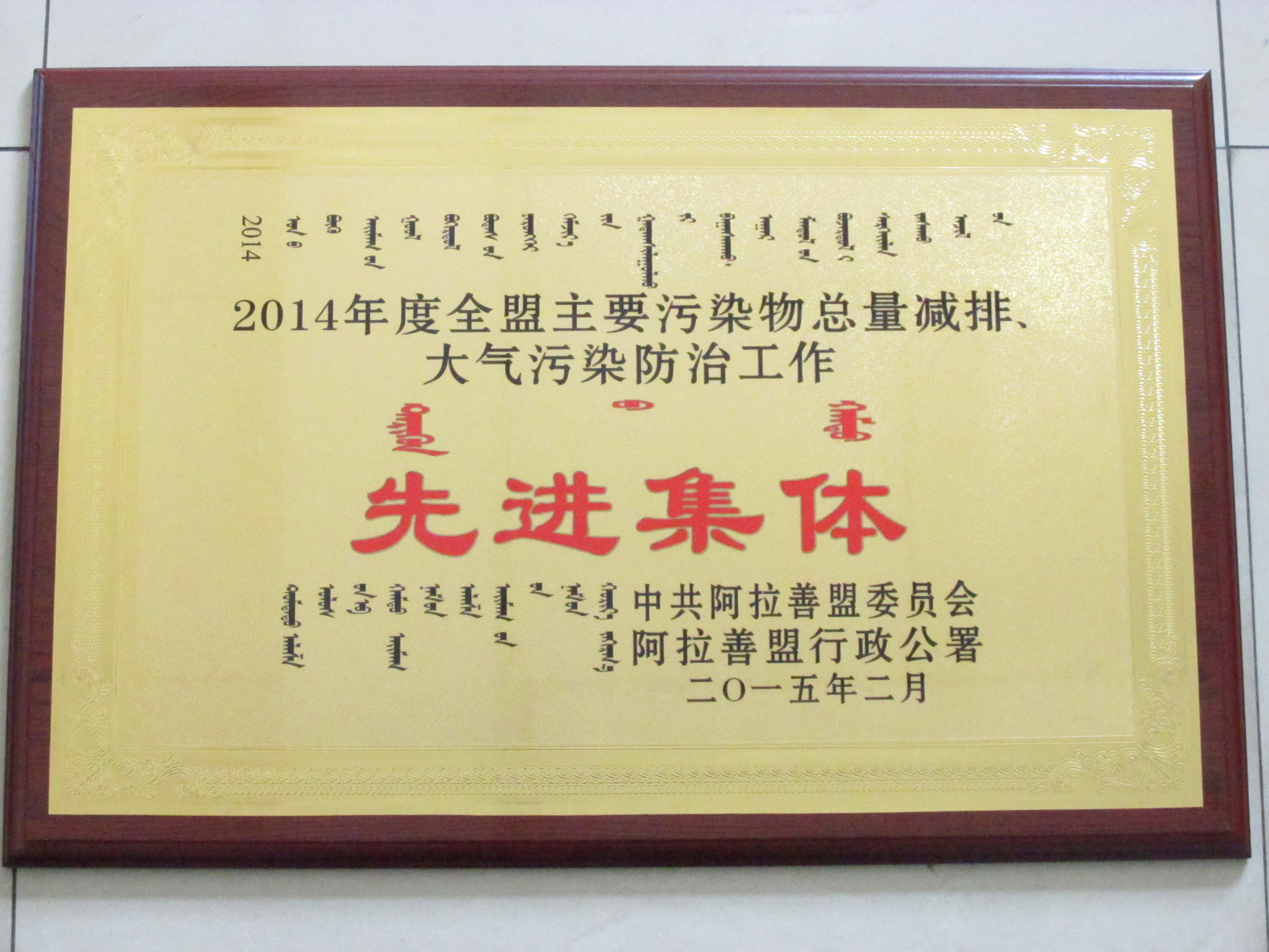 去年乌斯太焦化公司进行了煤气脱硫(一塔式)技术改造工程,煤气脱硫后硫化氢达到20mg/m�以下,降低了焦炉烟气SO2排放量,效果明显,为当地环保工作做出突出贡献。近日荣获由中共阿拉善盟委员会、阿拉善盟行政公署联合颁发的《2014年度全盟主要污染物总量减排、大气污染防治工作先进集体》荣誉称号。