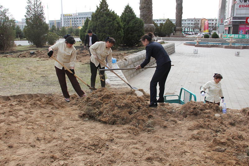 4月,春的气息弥漫着整个巴镇,偶尔的沙尘也掩不住绿意盎然。在这个孕育生命的季节里,为解决饭店四周草坪缺损问题,进一步美化饭店环境,为到店客人创造一个优美舒适的消费环境,太西饭店组织十个部门100多名员工分批次对饭店南侧一千多平米的草坪进行了翻土除草,为新的草坪绿化工作奠定基础。