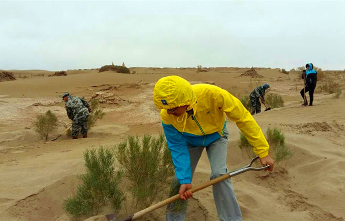 尽管当天风沙很大,但是同志们干的热火朝天。通过浇水、造林与苏和老人一起交流学习,使大家亲身感触到生态文明建设的重要性,进一步加深了对保护生态、绿化家园的感知认识,同时也深深为“时代楷模”苏和老人热爱家乡、保护家乡、建设家乡先进事迹所感动。从他的身上我们看到了环境再变、理想不动摇,社会再变、灵魂不浮躁,诱惑再多、信念不变质的共产党人政治本色。我们要学习弘扬他甘愿受苦、甘于奉献、艰苦朴素、心怀家国、心怀百姓、为家乡做贡献的崇高精神;学习他胡杨般顽强不屈的坚强意志,学习他梭梭般扎根戈壁的公仆情怀,努力做一名合格的共产党员,为额济纳旗建设做贡献。