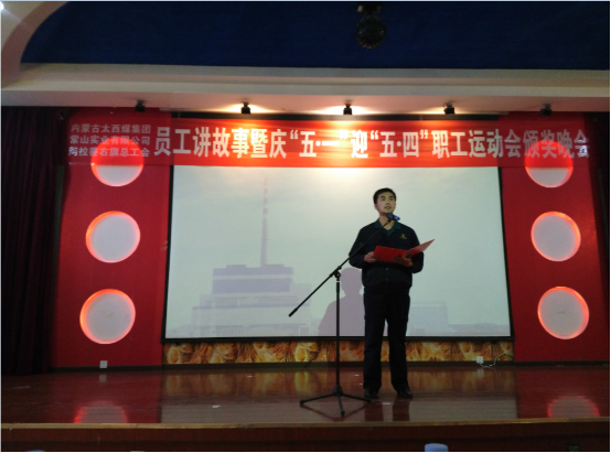 5月20日,举办了“员工讲故事暨庆五一·迎五四职工运动会颁奖晚会”。阿右旗总工会主席革命、阿右旗文联主席石岩和在家的领导出席了晚会。晚会上员工们讲述了发生在自己身边的真人真事,“平凡中演绎着感动”“劳动美,劳动最光荣!”“他的‘犟’让我折服”等一桩桩平凡的故事生动地展现在我们眼前,虽没有情节跌宕起伏的故事,没有气壮山河的豪言壮语,但诠释了故事主人公对岗位的尽职尽责,对企业的忠诚爱戴等胸怀。诠释了常山实业公司广大职工共促企业和谐发展的真谛。