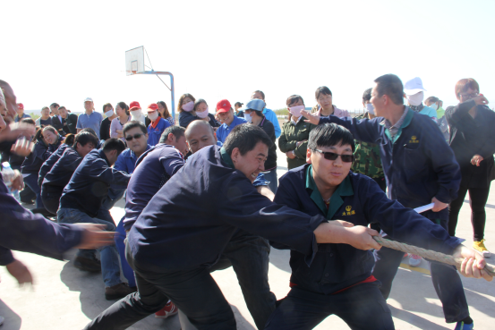 4月29日上午,拔河比赛为职工运动会打响头炮,场上双方队员鼓足了劲,咬紧牙关抓紧绳,使出浑身力气全力以赴,努力争夺。场下拉拉队员也不甘示弱,呐喊声加油声一浪高过一浪;拔河场上激战正酣,一边的男子扳手腕比赛也不甘落后,选手们涨红了脸,险中求胜;跳绳比赛区域,男子不输女子,跳绳在他们手中翻飞自如;定点投篮比赛讲究的是稳、准,男女队员沉着应对;立定跳远、踢毽子比赛更是不分伯仲,比赛非常激烈。在3个多小时的活动中,赛场上到处充滿了欢声笑语。下午,篮球和排球对抗赛正式开始,各比赛现场你争我夺,高潮迭起。