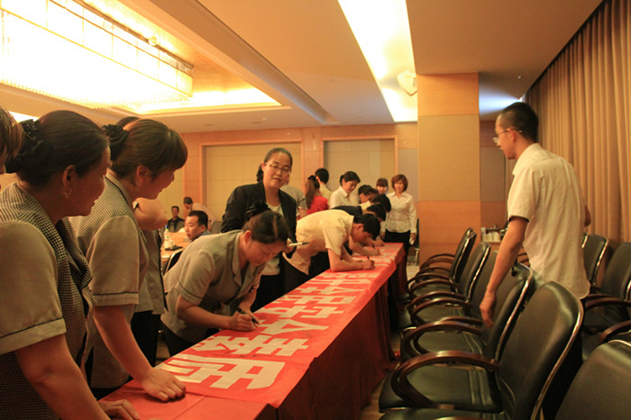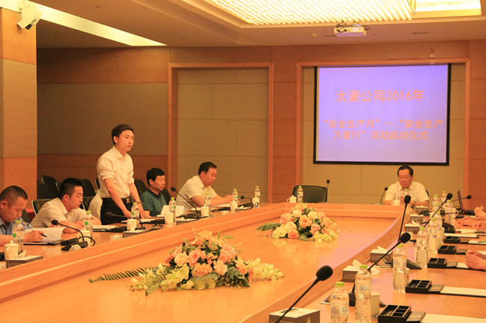 6月7日,太豪公司在全国“安全生产月”活动之际举行了”安全生产月”--“安全生产万里行”启动仪式,根据太豪公司“安全生产月”活动总体部署,紧紧围绕“强化安全发展观念,提升全民安全素质”的安全月主题,结合太豪公司实际工作,普及安全知识,弘扬安全文化,有力助推公司安全生产工作持续稳定进行。公司副总于智首先作了动员讲话,号召全体员工积极贯彻落实安全生产月相关文件精神,牢固树立安全质量意识,坚持把安全生产放在首位。随后,公司两位职工代表做了表态发言,全体员工在印有“强化安全发展观念,提升全民安全素质”的红色主题横幅上签名。