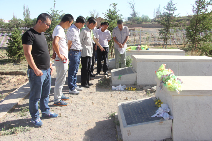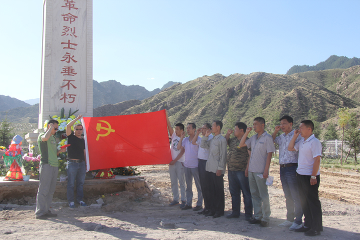 本井讯:为铭记党的丰功伟绩,激发党员干部的爱国热情,继承和发扬革命先烈光荣传统,7月1日上午,销售公司党总支组织党员干部、入党积极分子前往木仁高勒烈士陵园开展“缅怀先烈、继承遗志、与时俱进、共筑中国梦”为主题的纪念活动。来自宁夏蒙太煤业公司党支部、矿区党支部、本井党支部的15名党员和入党积极分子参加此次凭吊活动,在烈士陵园重温入党誓词。