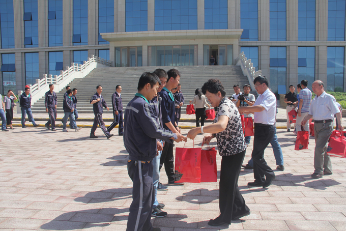 周书记说,地企共建和谐企业是我们地方政府和企业共同的义务和责任。感谢太西煤金昌鑫华焦化公司全体员工在烈日炎炎,酷暑难捱下,不辞辛劳奋战生产一线,为公司建设发展和地方经济的发展做出的贡献。在此我谨代表永昌县四大班子向公司员工致以深深地问候,夏送清凉虽微不足道,但是地方政府的一点心意,一丝关怀,请大家理解。在这里我提醒大家既要敬业工作,更要时刻关注自身的安全,提升安全意识,防止高温环境作业中暑。衷心祝福大家工作顺利,身体康安!