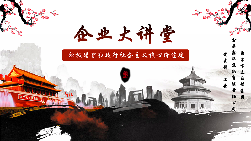 “今天,我们谈的社会主义核心价值观,即铸魂、修德、培育三步曲,我就想从了解为什么、是什么,怎么做进行阐述,最终要生根发芽、落到实处”。8月17日,金昌鑫华焦化公司党支部与工会举办联合举办了企业大讲堂,通过活动加深员工对社会主义核心价值观的理解认知和践行,培养员工的职业素养。来自公司各车间各岗位、职能部室近200人聆听讲座。