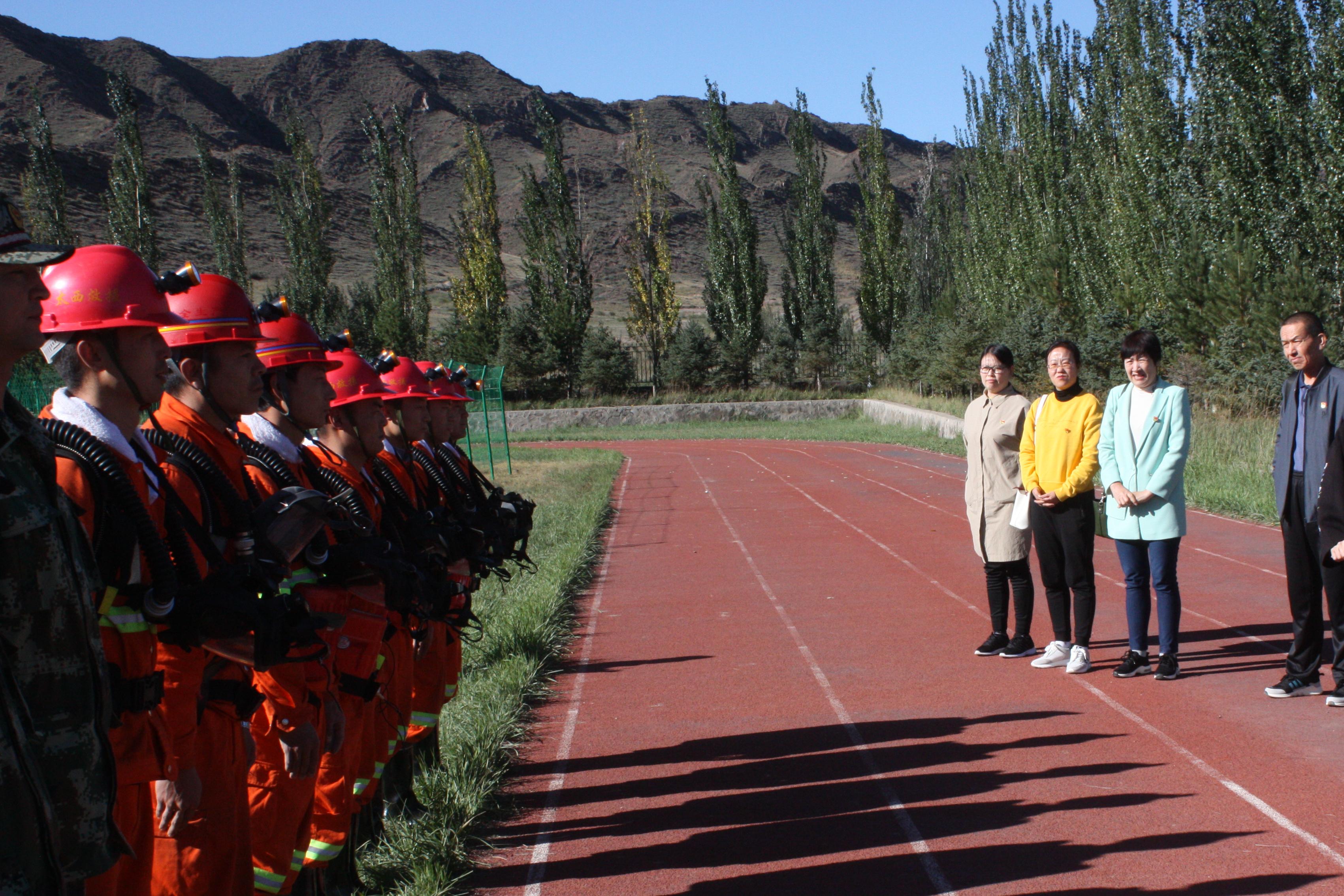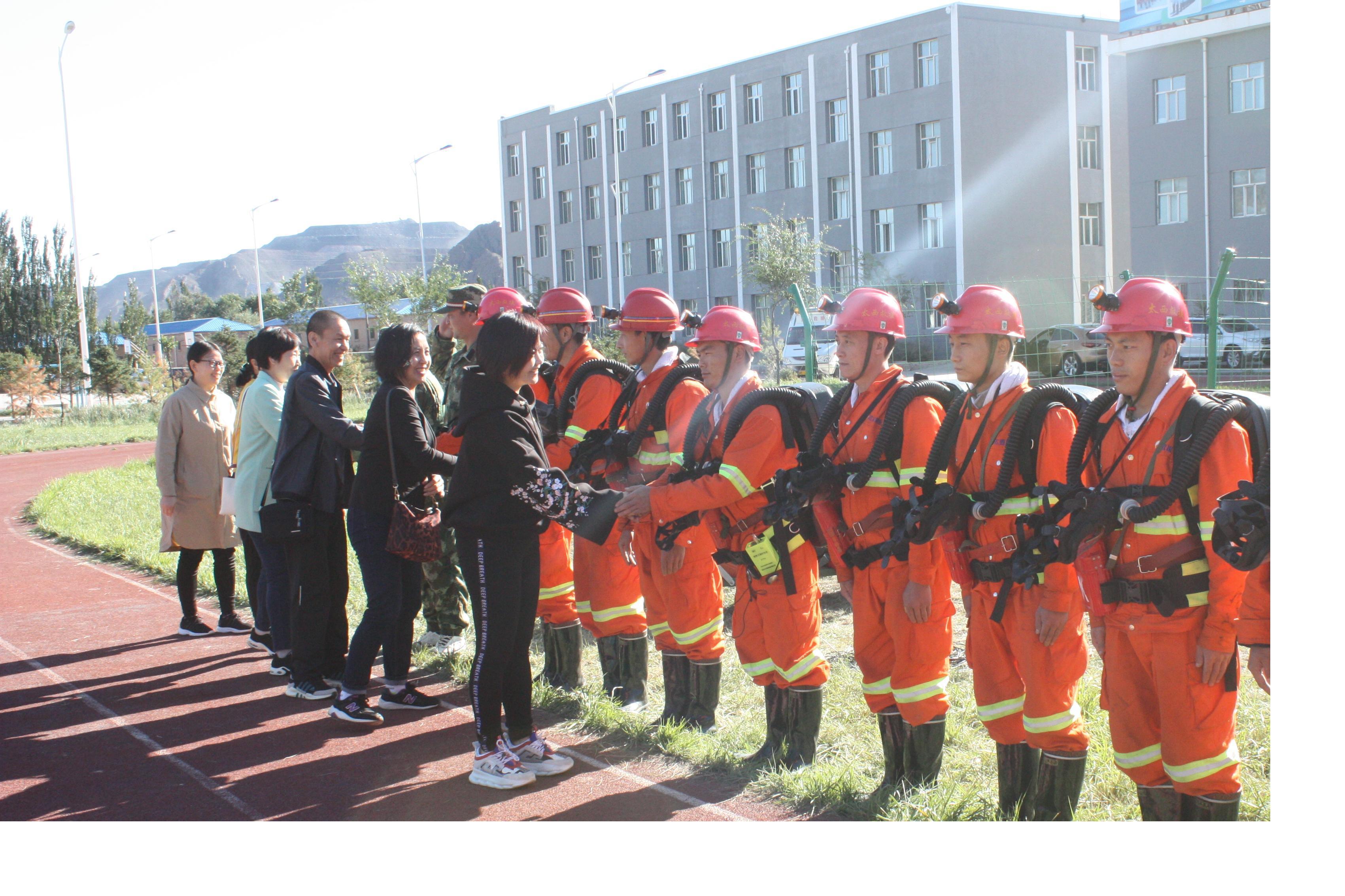 在国庆中秋佳节来临之际,集团公司党委书记、总裁王海霞一行党群领导班子,带着节日的礼品,带着关心、支持和厚爱对我太西煤集团矿山救援大队参加西部赛区救护技术竞赛的救护队员进行了慰问。