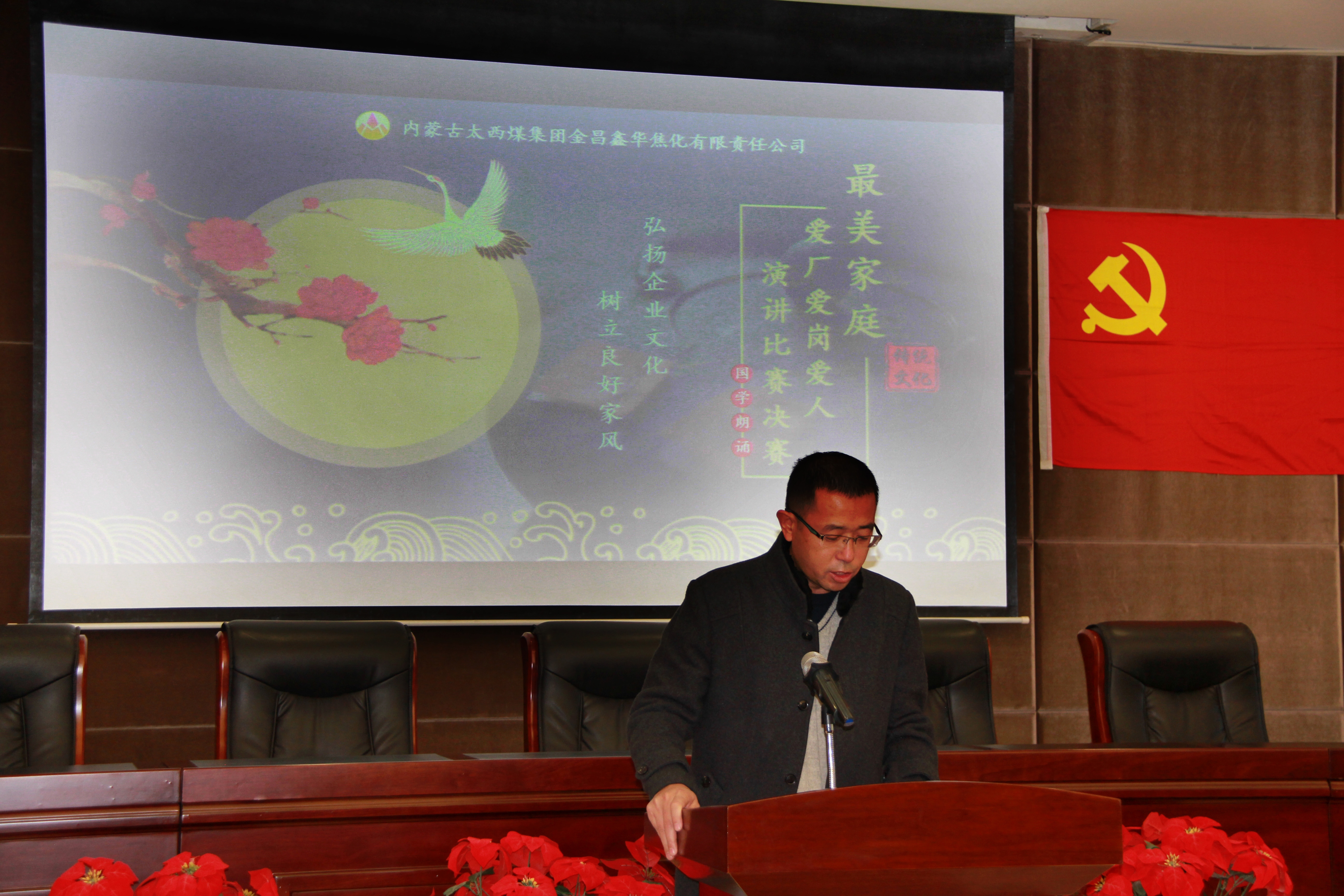 11月21日,金昌鑫华焦化公司举行最美家庭事迹宣讲暨“三爱”教育演讲比赛。公司领导李保军、黄绍东、杨天云、何铭基、章君、苏和、王书生、张萍出席活动。