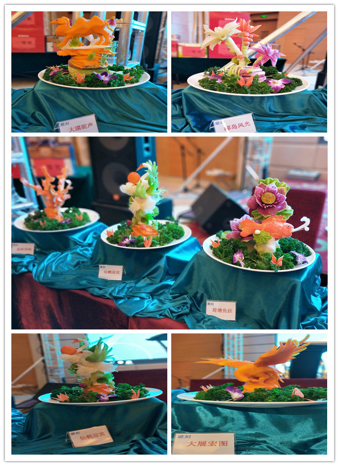 本次竞赛以“竞技能、育人才、促发展”为主题,秉承以赛促学,以赛促练、以赛促用的理念。内容贴近实际,体现出鲜明的行业特色。比赛共分为标准中式铺床、中餐宴会摆台、消防技能(单人两盘水带连接操作、单人快速穿着消防救援服30米折返跑)三大项目。中餐摆台竞赛中,服务员按照标准服务流程,完成铺台布、餐具定位、餐巾折花等规定项目;中式铺床竞赛考核了服务员仪容仪表、甩单定位、包角等内容;消防技能竞赛则重点检验消防人员的实战能力。经过激烈角逐各项目共评出一等奖、二等奖、三等奖各三名,优秀奖若干名。比赛结束后,出品部现场制作了雕花、果酱画、盐雕等作品展示,新鲜的果蔬在厨艺师的手下魔术般地变成了“飞禽走兽、龙凤鱼虾、奇花异草”等美妙绝伦的艺术品,令人叹为观止。