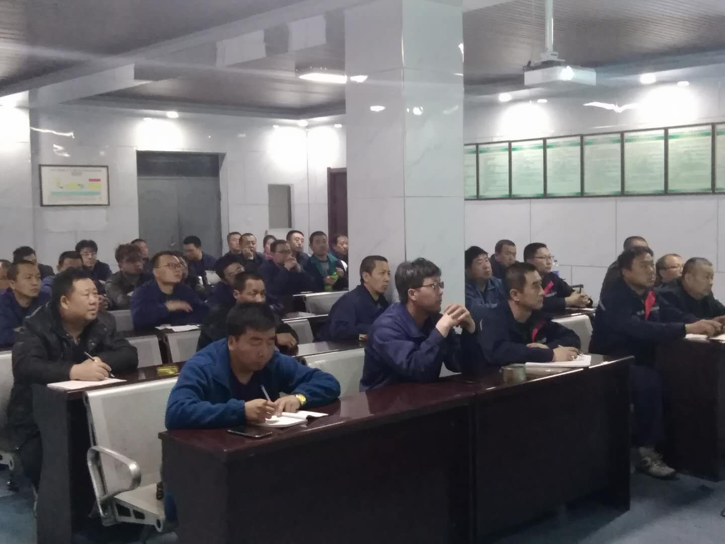 鉴于当前严峻的安全形势及环保的高压态势,公司党群部门宣传工作根据生产实际需求,助推力推公司安全生产各项工作,公司按照集团公司安全生产的重要指示要求,深刻吸取近期重大事故教训,坚持问题导向和底线思维,按照全覆盖,零容忍、重实效的总要求,严格落实安全监管主体责任,全面开展排查整治事故隐患等活动。同时,公司安监部协调相关安全生产管理人员开展“每周一学”“每月一考”安全业务学习活动。自文件下发起,中层以上领导进行备课,开展上台讲课活动,注重培训效果,加强培训管理,每周培训后将教案、签到表收集存档,成绩单及时公布存底;活动要求安监部、生产技术部、各分厂、车间负责人、兼职安全员及各工队队长全部参加;安全培训学习人员签到表有近百余人,培训内容包括《安全生产管理制度》、《安全管理常识》及《安全操作规程》等内容,培训内容由公司安监部,生产技术部、各分厂、车间相关人员或安全员进行授课,培训时间为每周四晚7点30进行;培训时间不得请假,未能按时参加培训人员根据公司相关规定进行考核,经考试成绩优秀人员给予奖励。