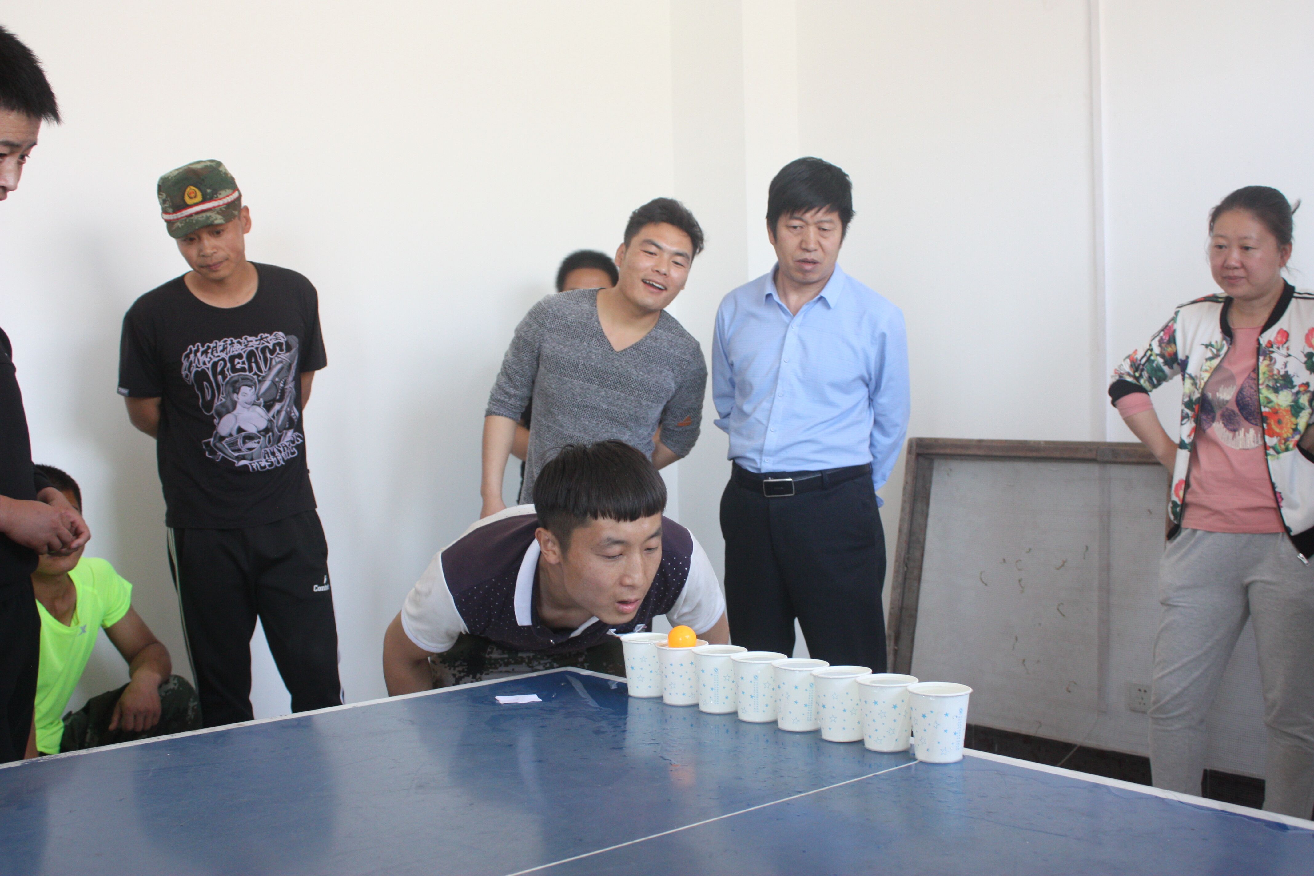 活动开展了定位投篮、跳绳、吹乒乓球、套圈子比赛;定位投篮让每位投篮者站在规定的5个不同位置进行投篮,男女各评出前3名;集体跳绳:通过抓揪的形式分为几个小组,每组2人摇绳,其他人员共同跳绳,在规定的时间内以跳跃次数多少排序;吹乒乓球接力赛:以小组为单位,将装满水的杯子排成一排,在第一个杯子里放一乒乓球,游戏者将乒乓球从第一个杯子吹向另一个杯子,止到最后一个杯子时下一个人接着再往会吹,这样来回往复运动,小组人员全部吹完,以用时最短者为优胜者;每项活动评出前2名给予奖励;为了活跃活动的气氛,定位摆放小型日用品及茶水进行套圈子奖励活动,增加了节日的欢快气氛。