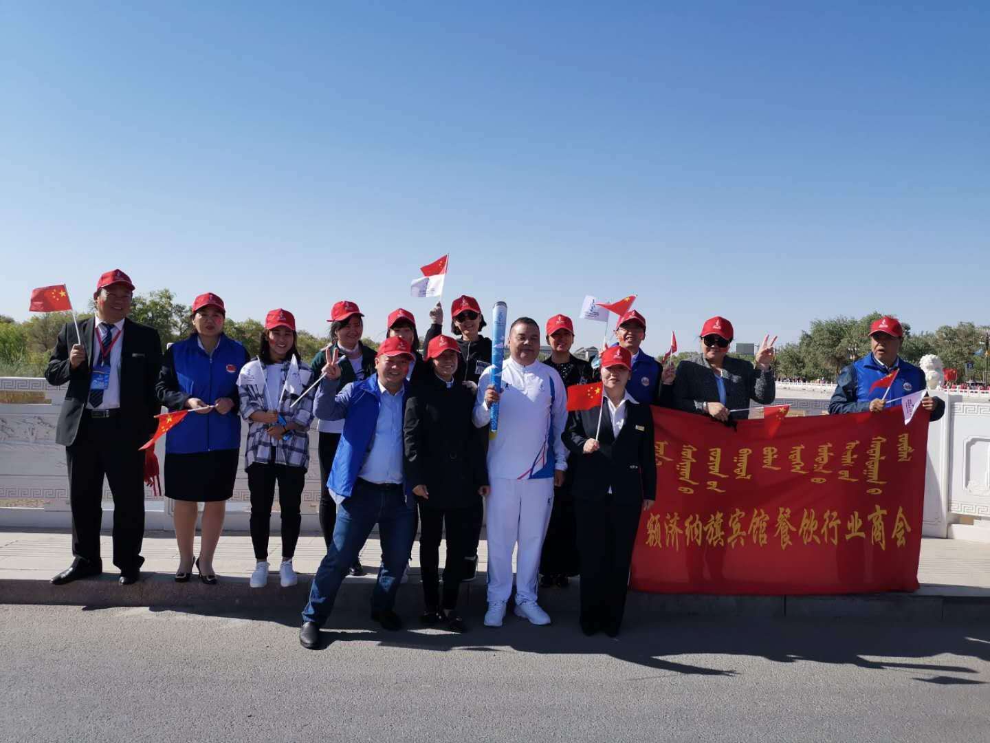 当火炬途径额济纳旗一道桥时,太豪公司应额济纳旗宾馆餐饮行业商会之邀派出职工为火炬传递呐喊,为十四冬助力。活动结束后,职工们与火炬手合影留念。